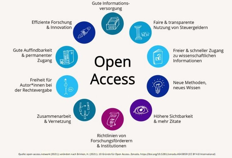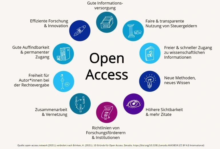 Open Access ist eine alternative Form des wissenschaftlichen Publizierens und hat zum Ziel, dass wissenschaftliche Werke ohne technische oder rechtliche Barrieren im Internet kostenfrei zugänglich sind. Neben der entgeltfreien Nutzung der Inhalte, sollte es erlaubt sein Volltexte "zu kopieren, zu nutzen, zu verbreiten, zu übertragen und öffentlich wiederzugeben sowie Bearbeitungen davon zu erstellen und zu verbreiten, sofern die Urheberschaft korrekt angegeben wird." Berliner Erklärung über den offenen Zugang zu wissenschaftlichem Wissen, 2003