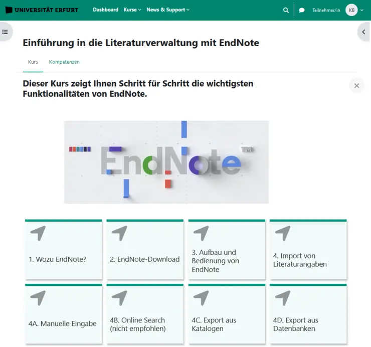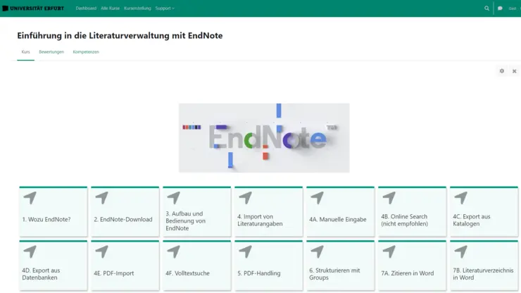 Sie finden den EndNote-Selbstlernkurs auf Moodle