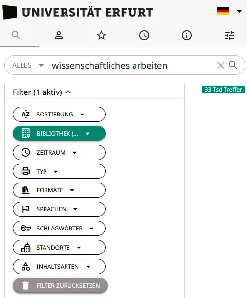 Discovery ist das Suchportal der Universität Erfurt für eine umfassende Literaturrecherche.