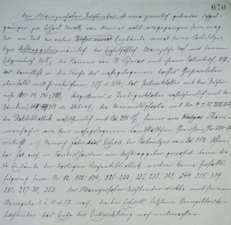 Adolf Rhein arbeitete an einem umfangreichen Werk zur Geschichte des Buchbinderhandwerks in Erfurt, dessen Manuskript Teil des Nachlasses ist und von Rheins schier unerschöpflichem Wissen über Einbände zeugt. Auf der Suche nach den Quellen dieses Wissens studierte Frau Jung Adolf Rheins „Wanderbuch“ (NRhein A3) – eine gebundene Sammlung von Briefen, Notizen und anderen Dokumenten aus seiner Zeit als Wandergeselle in Karlsruhe, Stuttgart, Zürich und Italien 1904 bis 1906.
