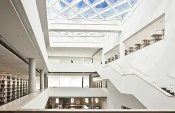 Als "zentrales Labor der Geisteswissenschaften" bietet die Universitätsbiliothek Platz zum Lesen und Arbeiten, alle Fachgebiete unter einem Dach und weitgehende Zugänglichkeit der Bestände in Freihandaufstellung.