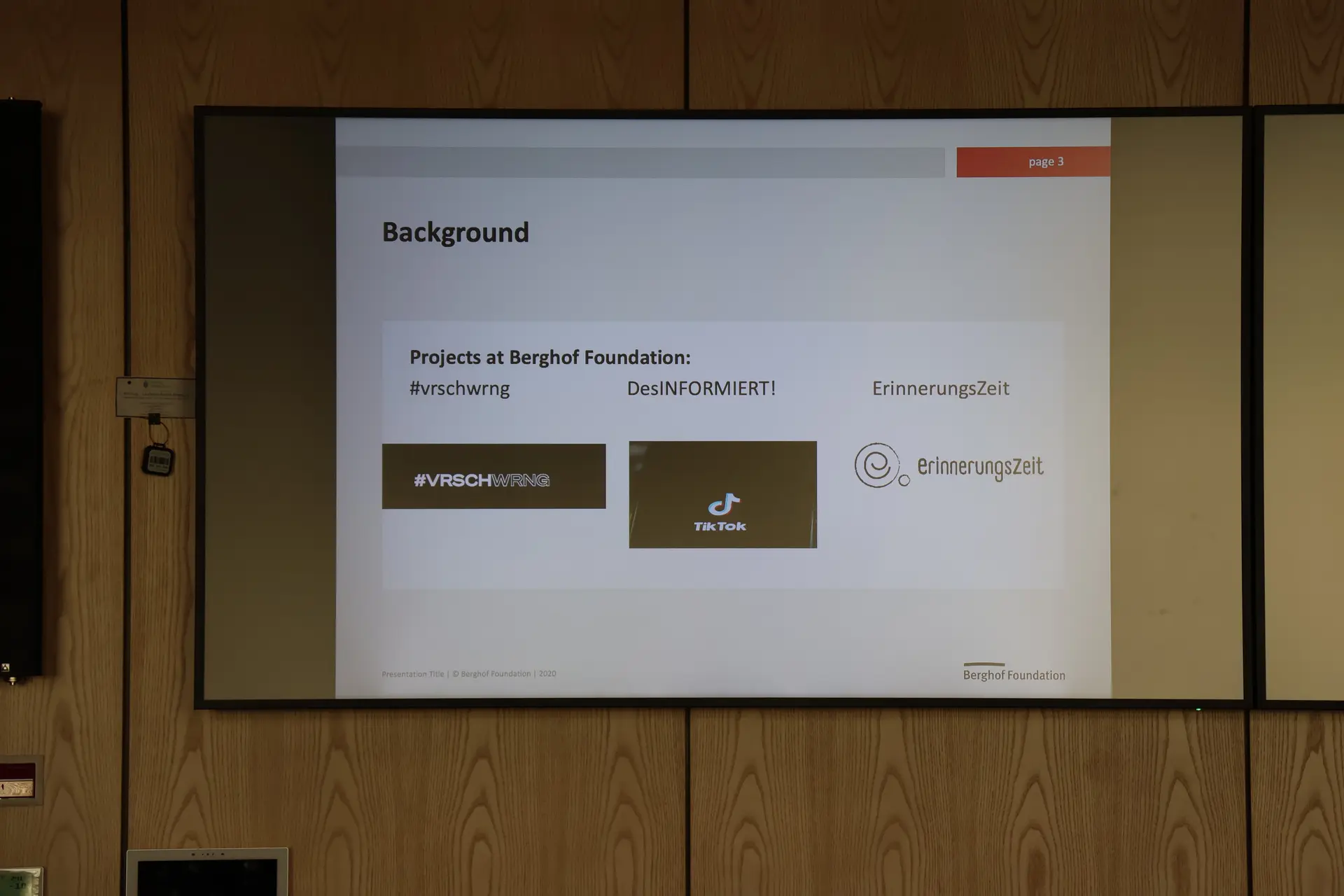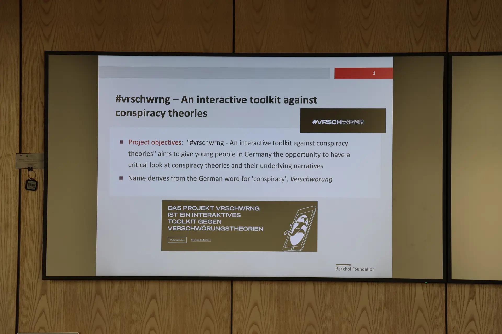 Im Kontrast dazu widmete sich Tessa Schindler der aktuellen Herausforderung in Deutschland: digitaler Desinformation. Sie stellte das Projekt #vrschwrng der Berghof Foundation vor – ein interaktives Toolkit, das Jugendlichen hilft, kritisch mit Verschwörungstheorien umzugehen. In über 130 Workshops wurden bereits mehr als 3.000 junge Menschen erreicht, inzwischen sind auch Eltern und Lehrkräfte einbezogen. Die Botschaft: Eine digitale Friedenskultur entsteht, wenn junge Menschen befähigt werden, Hassrede, Falschinformationen und soziale Spaltung zu erkennen und zu bekämpfen.