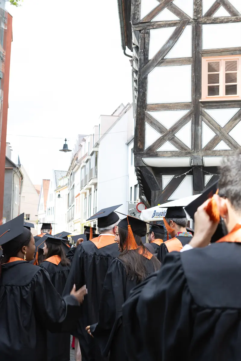 Im Zentrum des Abends stand die Abschiedsfeier für 36 internationale Absolventinnen und Absolventen des Master of Public Policy. Gemeinsam mit Familien, Freund*innen, Lehrenden und Gästen wurde im Collegium Maius ihre Leistung gewürdigt – zwei Jahre intensiven Lernens, persönlichen Wachstums und gemeinsamer Erfahrungen in Erfurt.