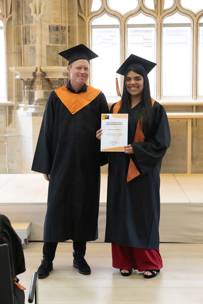 • Sofia Navarro Kienast erhielt den Excellence in Service and Leadership Award – für ihren unermüdlichen Einsatz für die Studierendenschaft und ihren starken gesellschaftlichen Gestaltungswillen. Die Auszeichnung basiert auf Vorschlägen und Abstimmungen aus dem Kreis der Mitstudierenden.