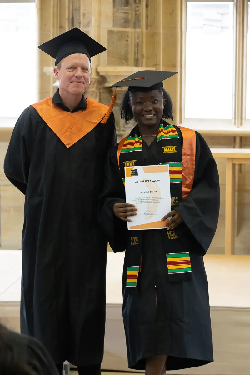 • Loise Effah Yeboah wurde mit dem Dietmar-Herz-Preis für ihr Engagement im Sinne des gesellschaftlichen Dienstes geehrt – eine Auszeichnung, die an den Gründungsdirektor der Brandt School erinnert.