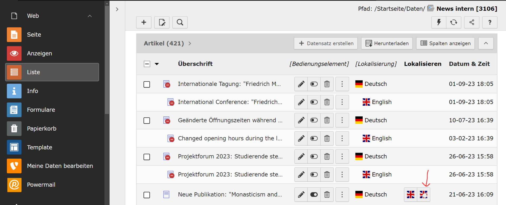 Adminstratoren können auf der Seite 13302 Begriffe anlegen und editieren. Konkretes Glossar wird mit jedem Call berücksichtigt und Begriffe werden korrekt übersetzt.