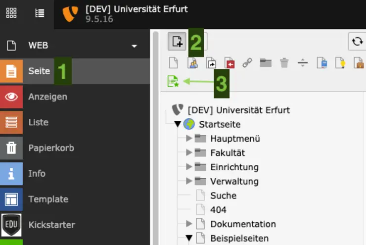 - Klicken Sie oben im Seitenbaum auf das Pluszeichen.