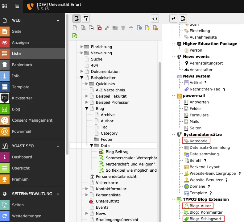 Hinweis: Wenn Sie Kategorien hinzufügen möchten, machen Sie das mit den normalen TYPO3-Kategorien (Tab: Kategorien)