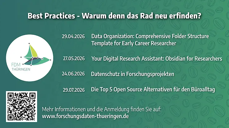 The Thuringian Competence Network for Research Data Management will present the new series of our popular Coffee Lecture series in April 2026!