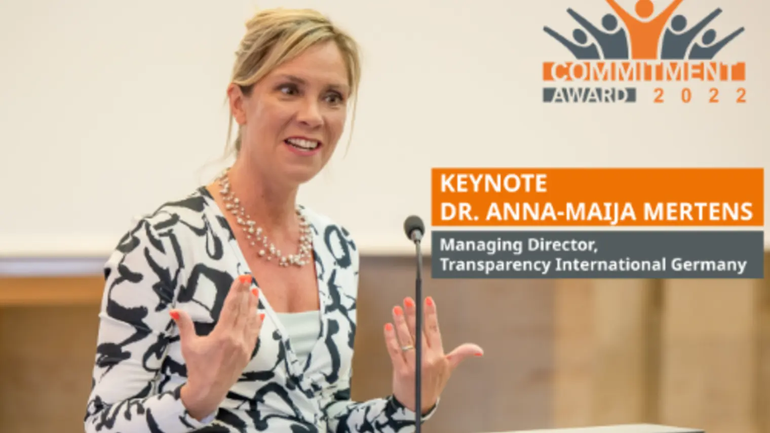 At the 2022 Commitment Award ceremony, Dr. Anna-Maija Mertens, Managing Director of Transparency International Germany, held an inspiring keynote speech on social entrepreneurship, power and transparency.