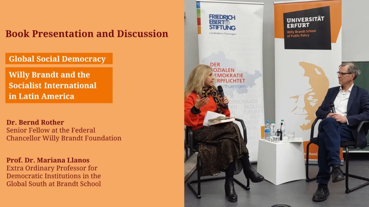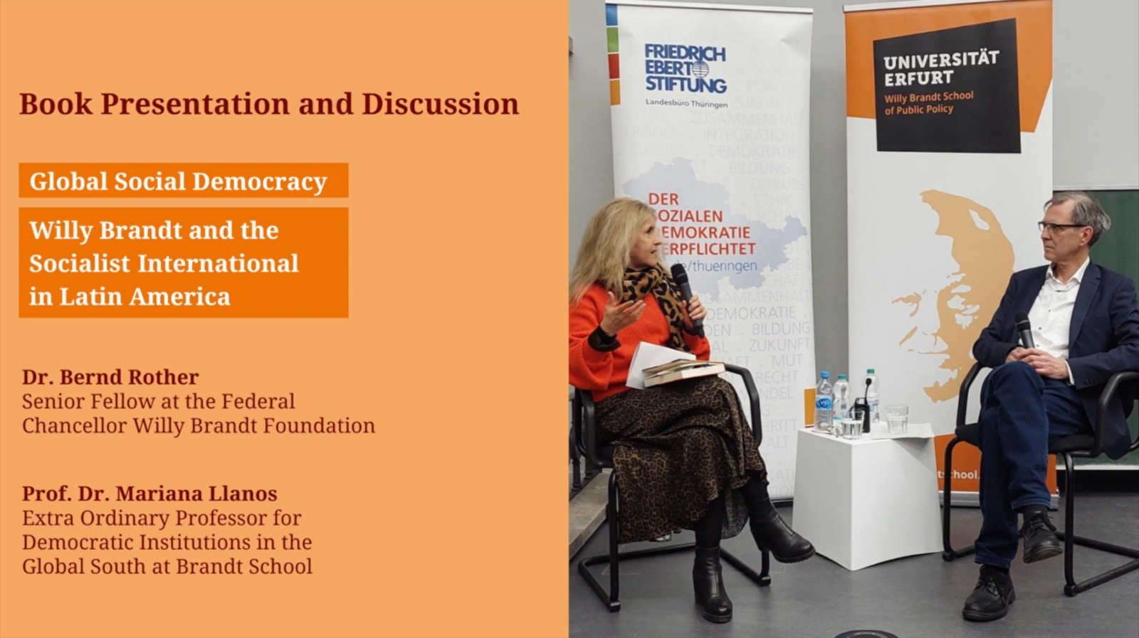 The Brandt School Guest Lecture Series brought together Dr. Bernd Rother, author of the book “Global Social Democracy: Willy Brandt and the Socialist International in Latin America”, and Prof. Dr. Mariana Llanos, the book discussant, in a book presentation and discussion session. Presenting his book, Dr. Rother chronicled Willy Brandt´s tenure as president of the Socialist International (SI) from 1976 to 1992, particularly his work with the socialist international in Latin America. Willy Brandt assumed the leadership of the Socialist International at a time when the organization was undergoing unprecedented generational changes in outlook and in its leadership and membership. Central to his tenure as president of the socialist international was his programme to further the ideals of the socialist international beyond Europe to Latin America, Africa, and Asia. He pursued a pragmatic approach geared towards the improvement of the conditions of people in various parts of the world rather than an insistence on social democratic purity.
