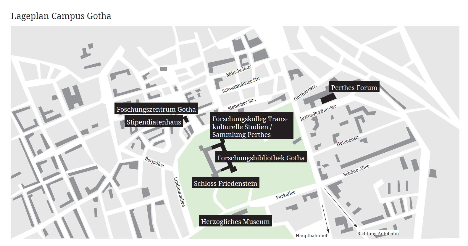 You can reach the Centre for Transcultural Studies from the train station by getting on one of the trams (lines 1, 2 and 4) at Bahnhofsplatz. Get off at the stop "Orangerie". Cross Friedrichstraße and continue walking for about 100 metres. Turn left at Ekhofplatz. Follow Philosophenweg, which then becomes Friedrich-Jacobs-Straße. After a few hundred metres, the Pagenhaus will be on the eastern side of the Friedenstein Palace, where the Centre for Transcultural Studies is located.