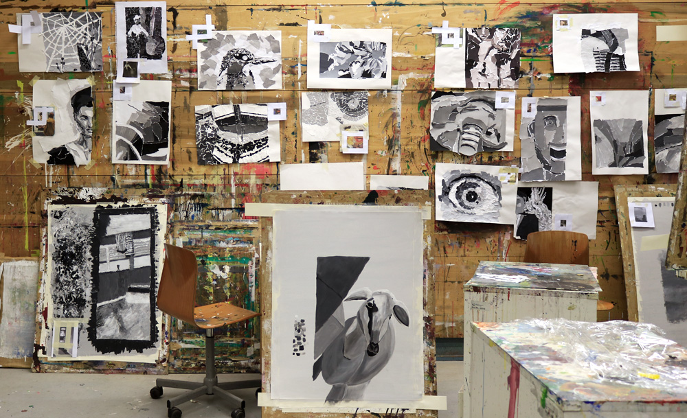 - In der Orientierungsphase (1. und 2. Semester) erwerben die Studierenden im Rahmen der Basic-Kurse Fähigkeiten und Fertigkeiten in künstlerischen Techniken, experimentieren mit unterschiedlichen konzeptionellen und technischen Möglichkeiten und entwickeln die Fähigkeit, für ihre Ideen eine adäquate künstlerische Form zu finden. Dabei durchläuft jede_r Studierende folgende Kurse: Zeichnen, Malerei, Plastik, Druckgrafik und Video.