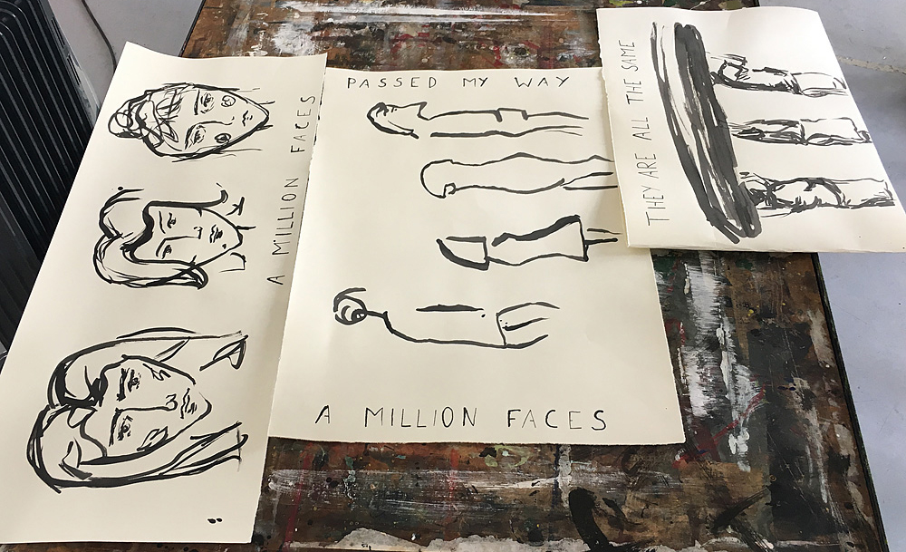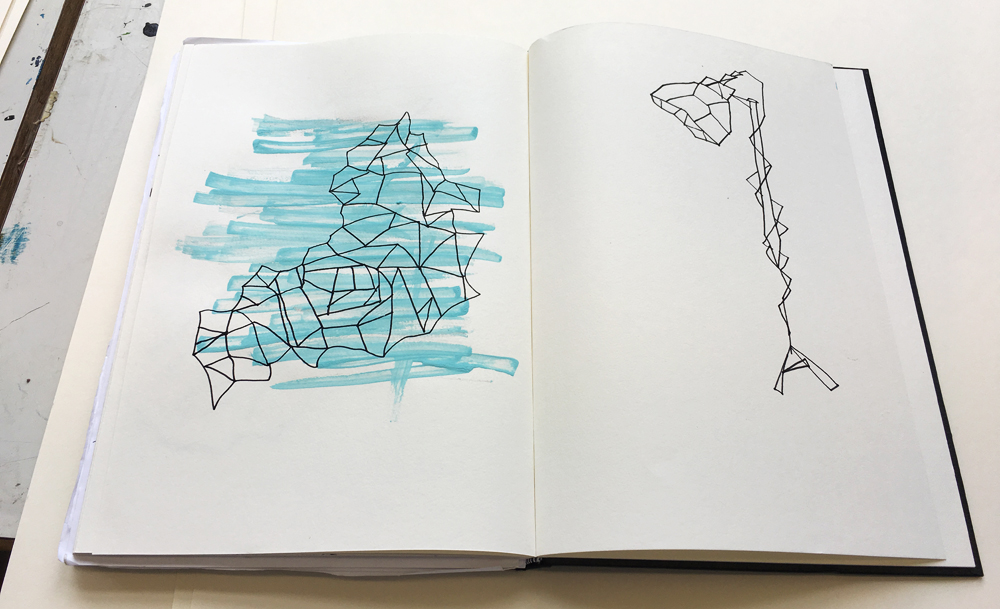 (Abbildungen: Annika Zabel, aus dem Skizzenbuch | Elisabeth Langer, Plastik - found objects | Sarah Fabbri, Farbsiebdruck)
