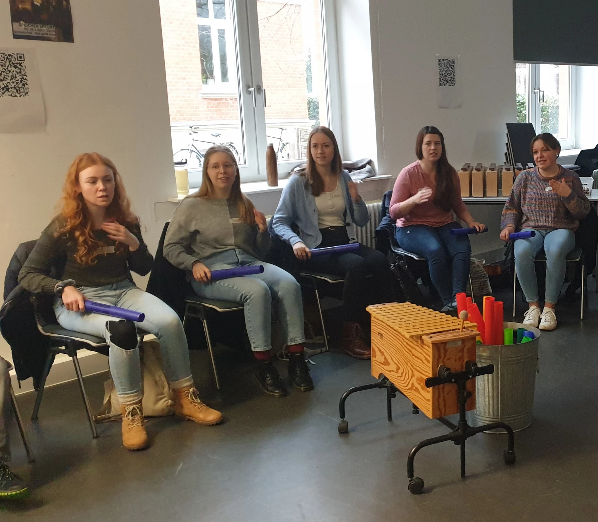 Im Rahmen der musisch-rhythmischen Grundbildung lernen angehende Grundschullehrende unabhängig von ihrer Fächerwahl, wie sie Musik in ihre eigene pädagogische Arbeit integrieren können. Neben Methoden zur Anleitung und Umsetzung unterschiedlicher Musizierpraxen stehen dabei die Ausdifferenzierung der individuellen musikalischen Fähig- und Fertigkeiten im Mittelpunkt.