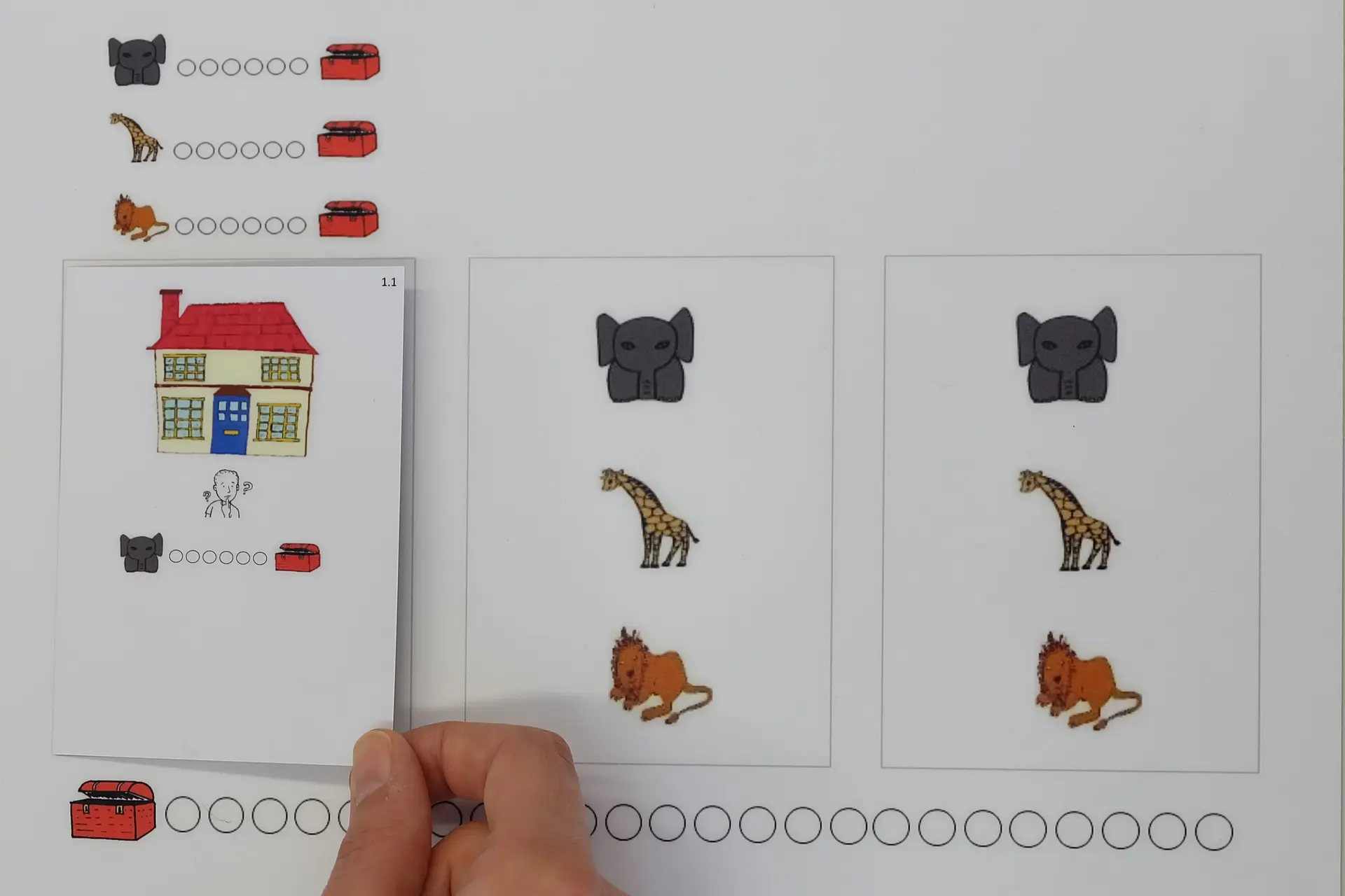 The treasure hunt game is made up of two different phases. In the learning phase, participants first learn the validity of each animal – that is, they observe its rate of providing correct advice. In the subsequent test phase, participants can then make a series of choices between different houses while utilizing the animals’ advice. During the test phase, the animals’ validity is represented by so-called "smart circles", which were assigned to each animal during the learning phase. Learning validities through experience and representing validities as simple frequency displays allow the treasure hunt game to be applicable even to preschoolers.