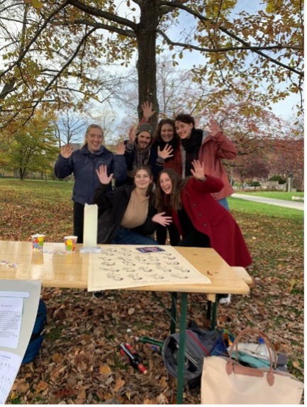 wir sind eine neue Hochschulgruppe der Universität Erfurt. Dieser Stammtisch ist eine motivierte Gruppe, die in einem entspannten Setting gemeinsam neue Gebärden lernen und in der wir uns zusammen mit der deutschen und internationalen Gehörlosenkultur auseinandersetzen. Die meisten von uns haben die zwei DGS-Sprachkurse der Universität belegt und jetzt wollen wir gemeinsam diese visuelle Sprache weiterlernen. Wir treffen uns jede B-Woche mittwochs um 18:15 Uhr im Gebäude LG1 Raum 124 der Universität in Erfurt. Für Fragen sind wir jederzeit auf unserem Instagram Account erreichbar (dgs.stammtisch.erfurt).