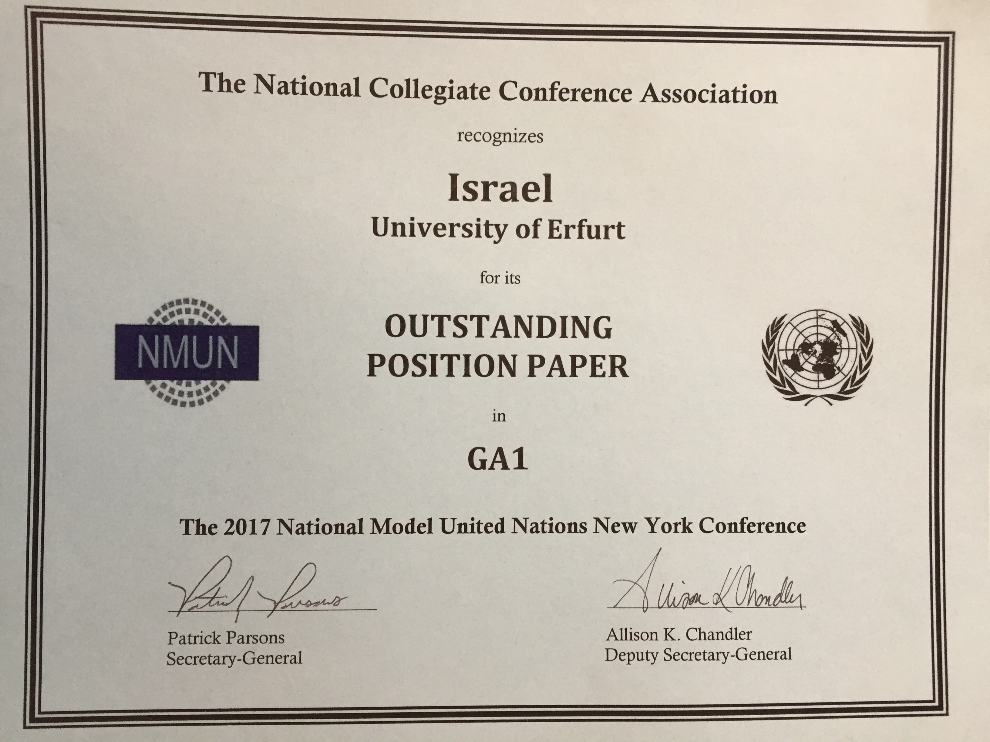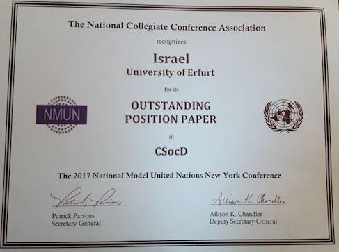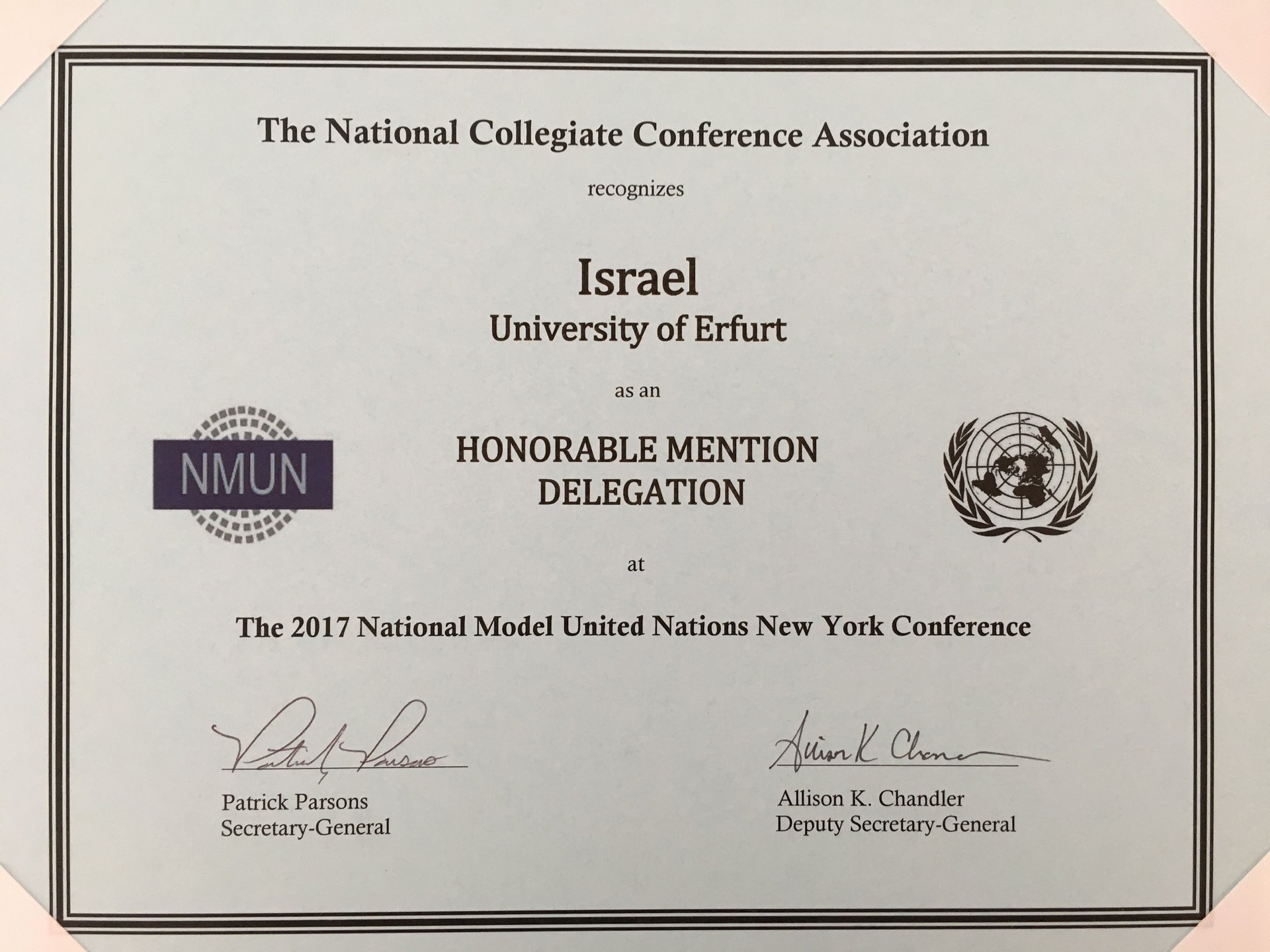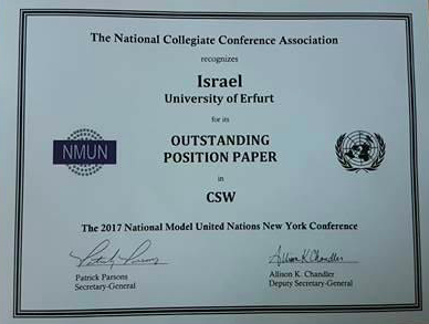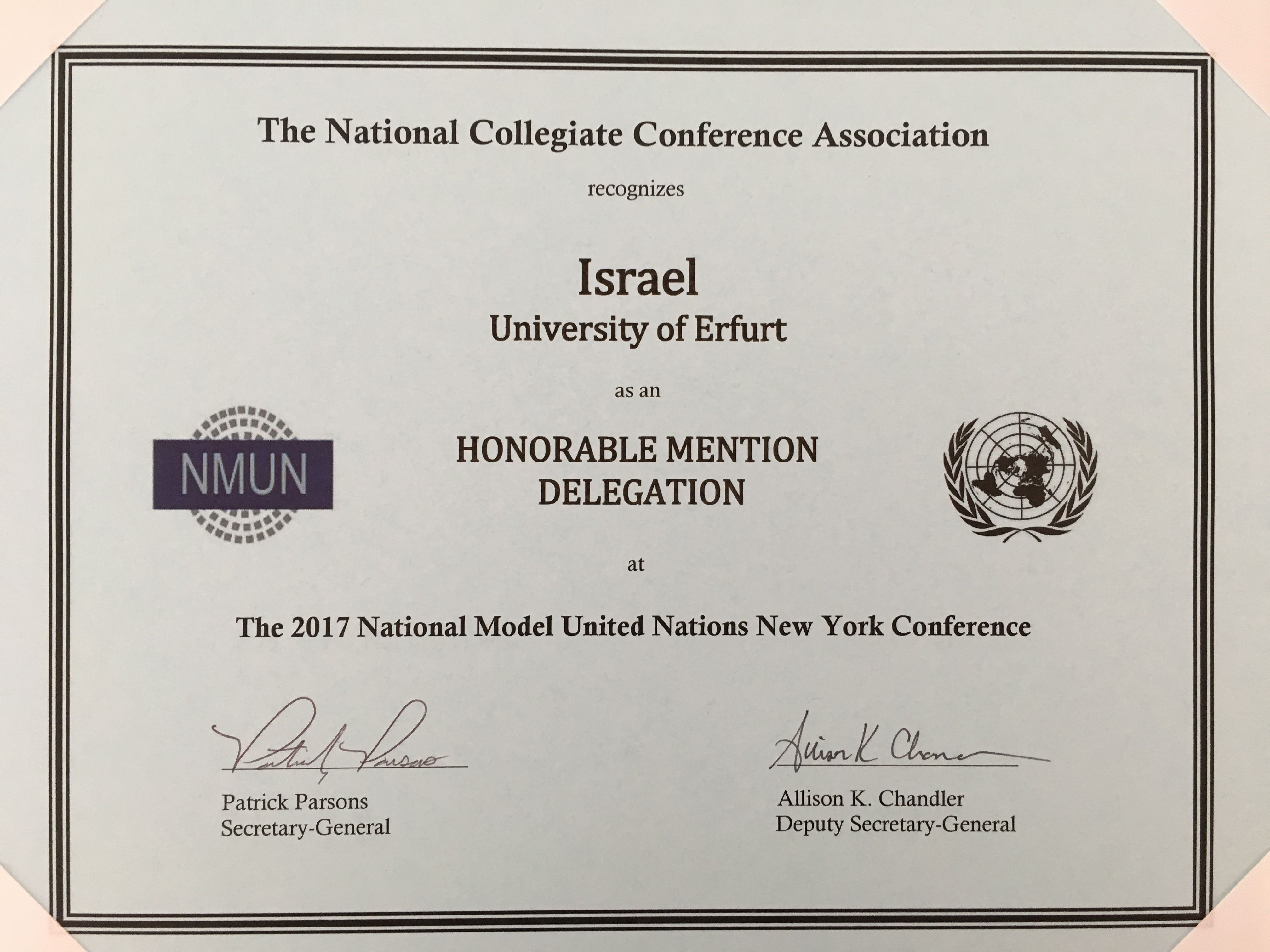In previous years the University Erfurt won several awards at NMUN NYC.
