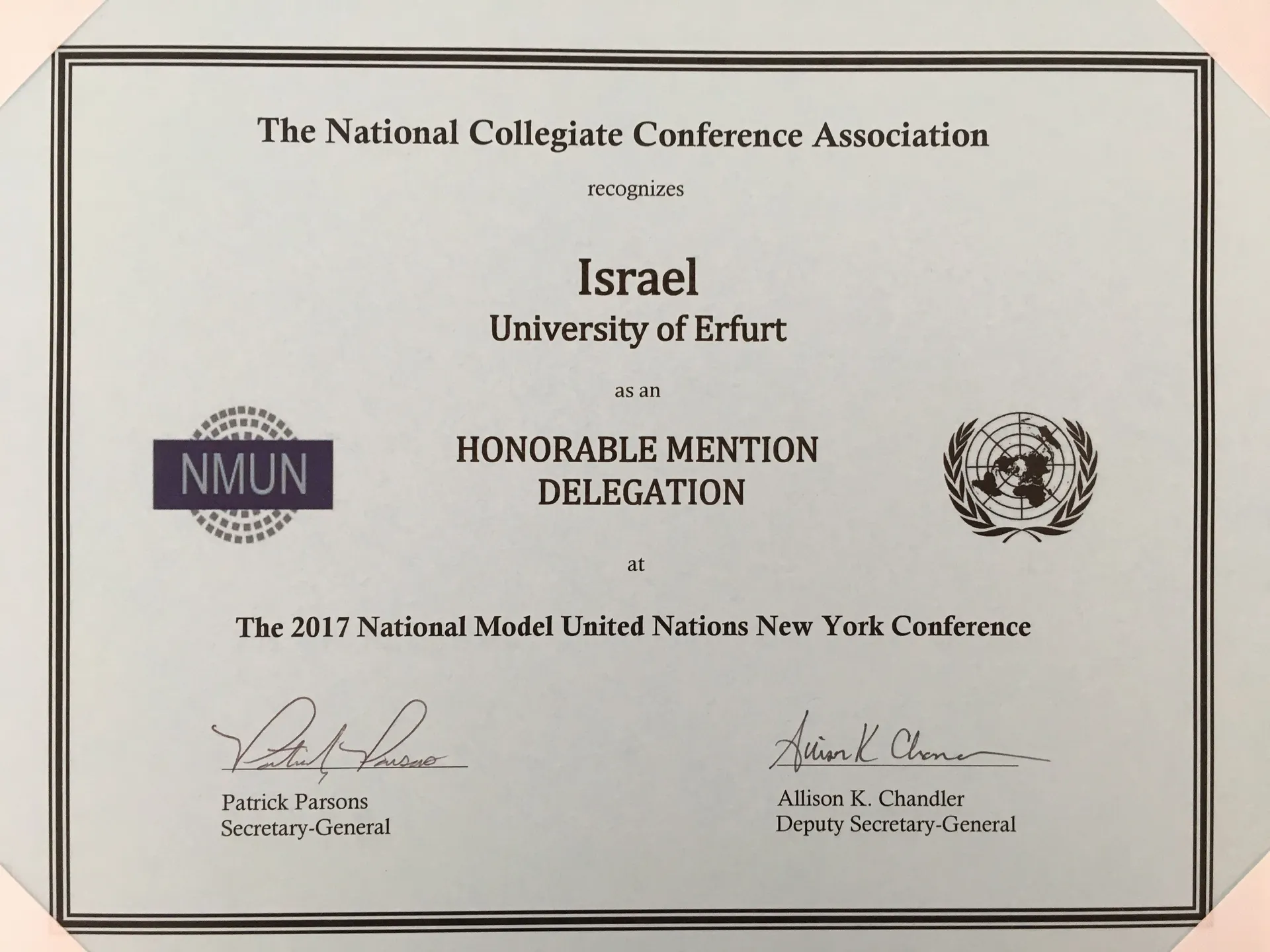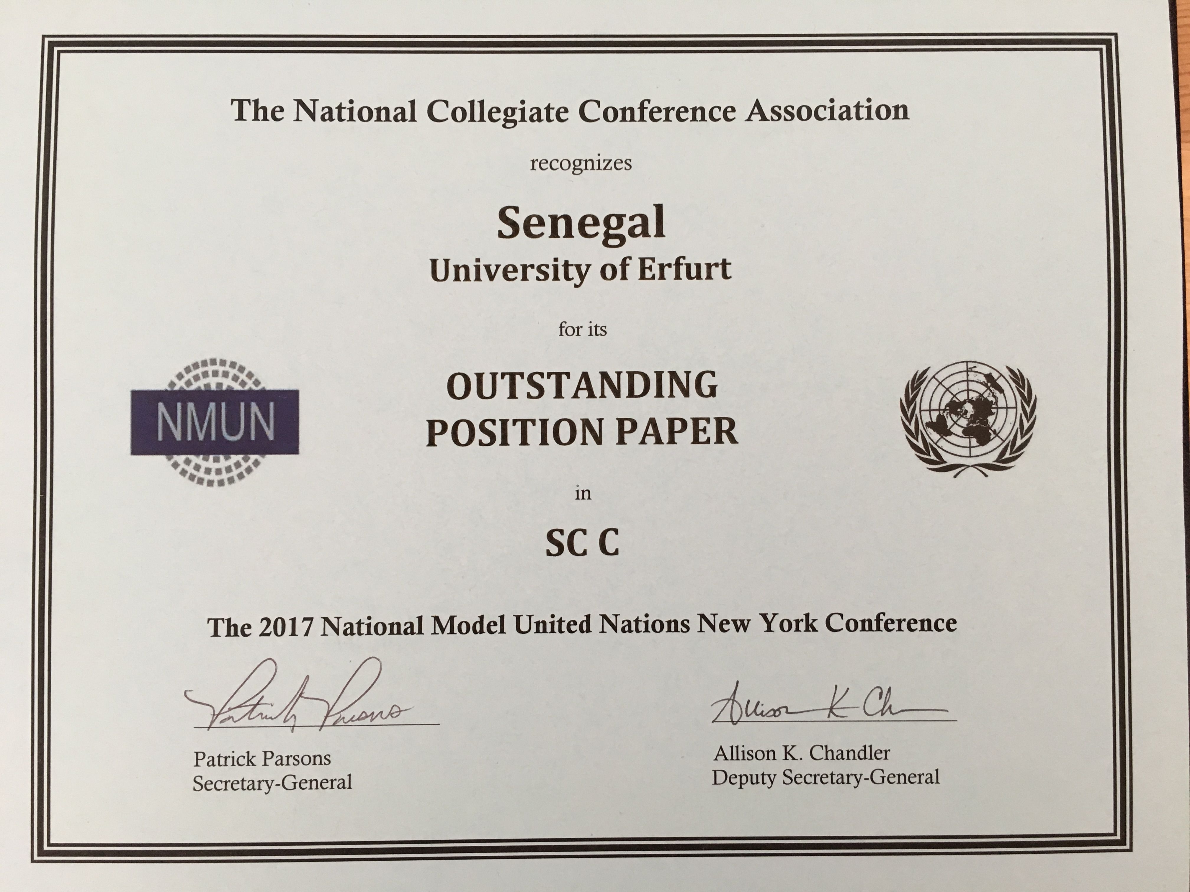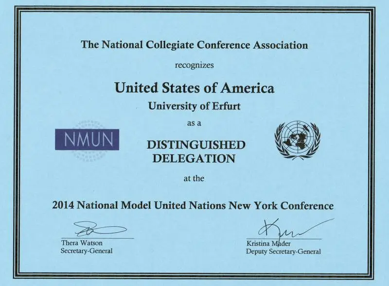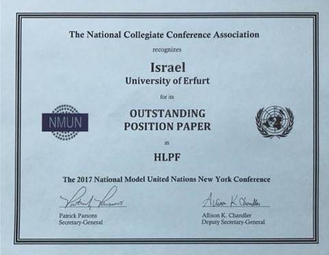 In previous years the University Erfurt won several awards at NMUN NYC.