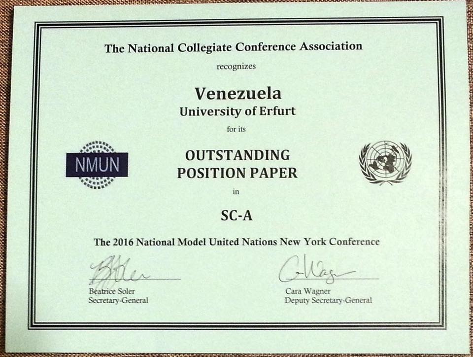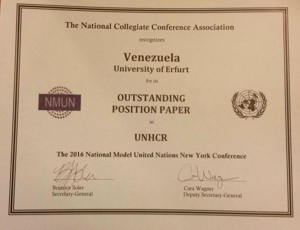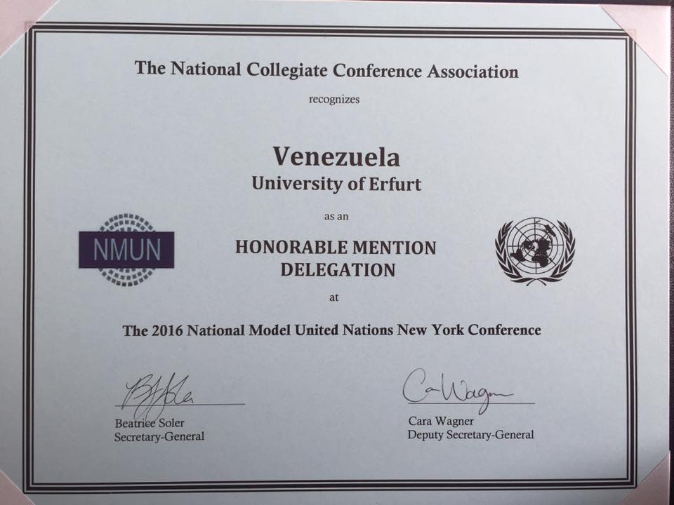 The University Erfurt delegation had the honor of representing Venezuela at NMUN 2016 in New York City.