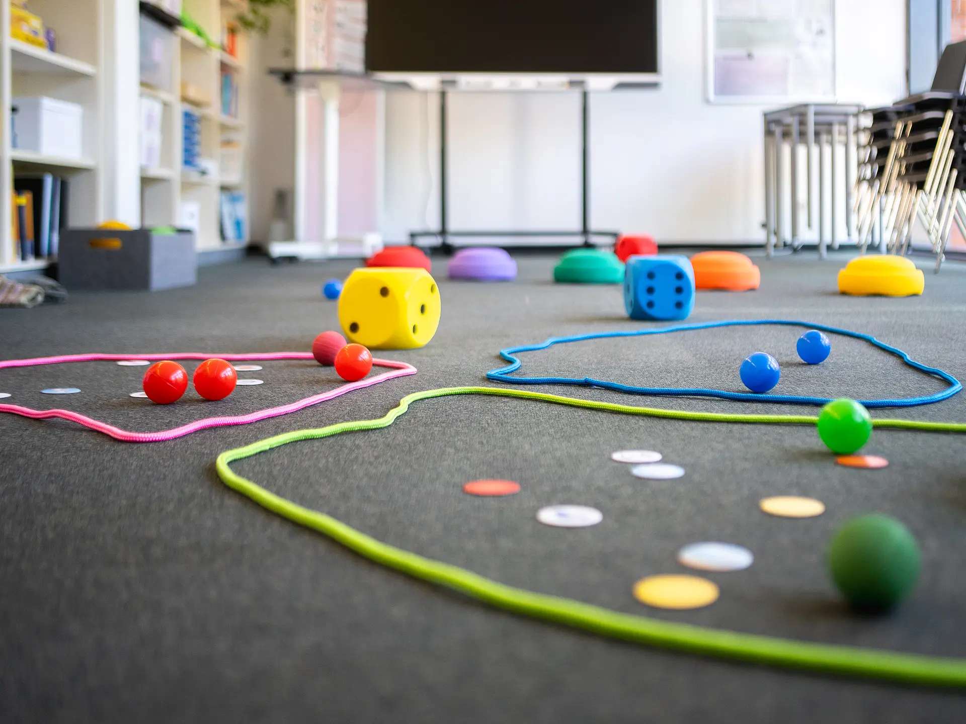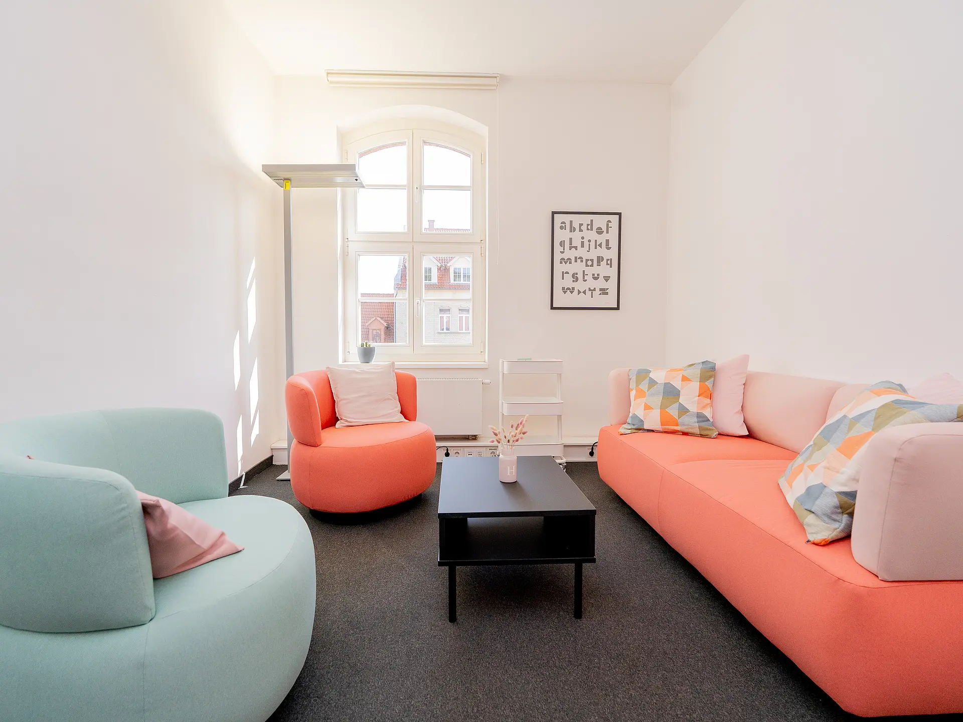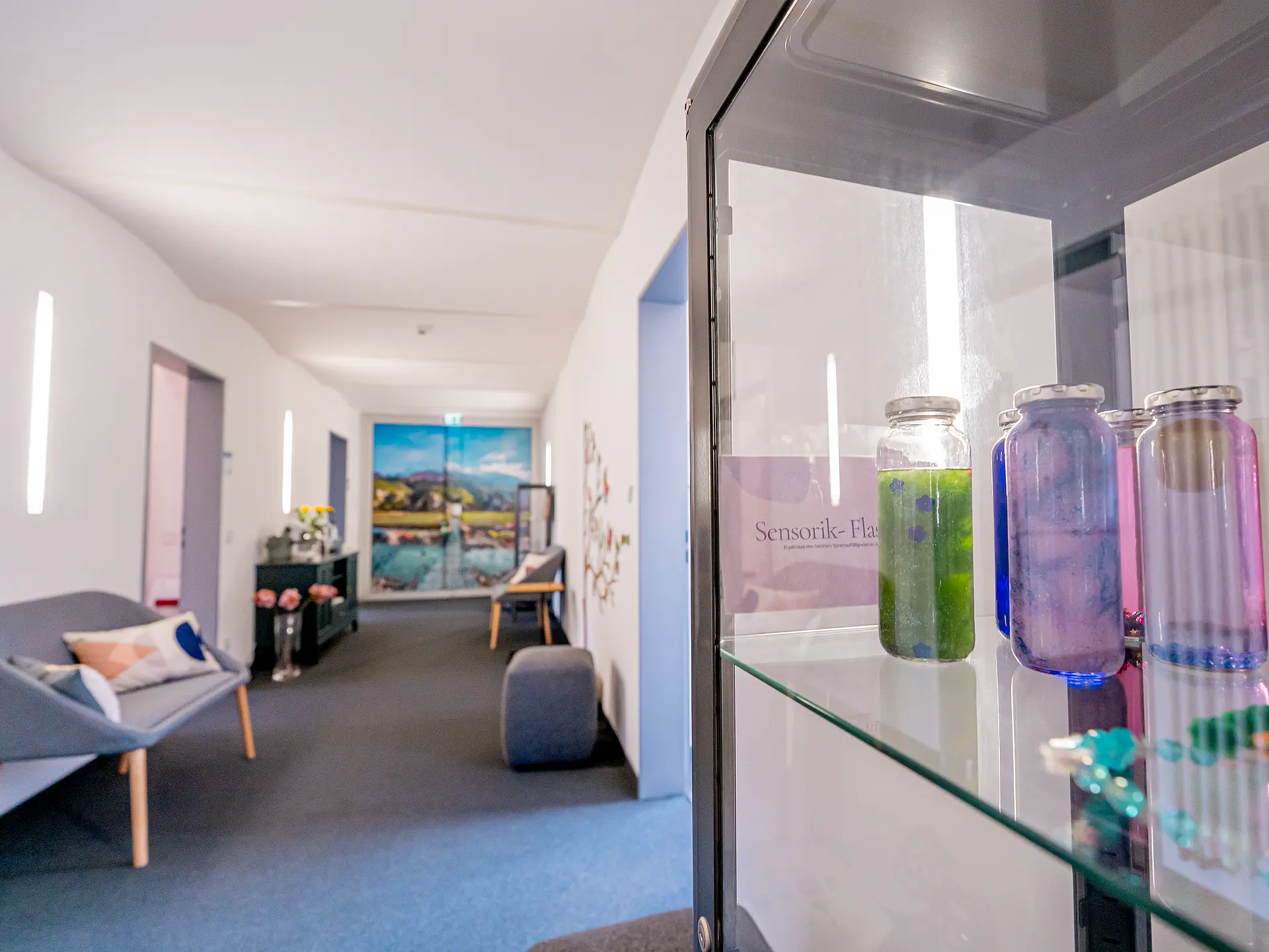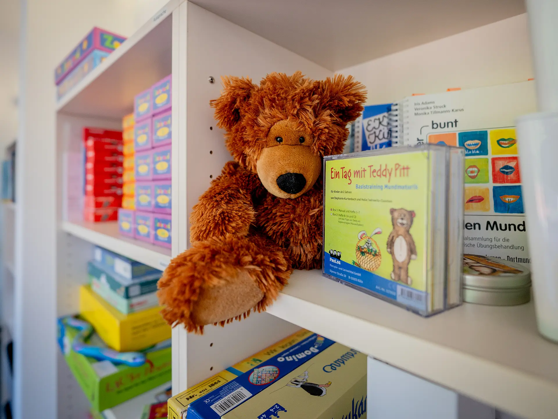 Wer das kühle, nüchtern-moderne Treppenhaus des historischen Gebäudekomplexes in der Erfurter Altstadt hinaufgeht und sich im zweiten Obergeschoss nach links wendet, wird von einem warmen Licht empfangen, das durch die Glastür scheint. „Willkommen, Welcome, Bienvenue …“ steht in vielen Sprachen auf einem Schild. Daneben eine kleine Kommunikationskarte, die „Herzlich willkommen“ sowohl in Gebärdensprache als auch in Braille-Schrift zum Fühlen zeigt. An alle wird gedacht, alle sollen sich willkommen fühlen. Vom langen Flur, an dessen Ende ein Bergpanorama prangt, gehen rechts und links Büro- und Beratungsräume, eine Teeküche und Seminarräume ab. Alles ist hell und freundlich in Weiß, Mintgrün und zartem Rosa gestaltet. Das Auge hat viel zu entdecken: Bücher, Vitrinen mit Lern- und Fördermaterialien, Symbolkarten zur unterstützten Kommunikation und Spielanregungen, ein Stimmungsbarometer, ein Gewichtskuscheltier zur Selbstregulation. Grauer Teppichboden, ein kleines Sofa, eine Anrichte, auf der Tee angeboten wird, Wohlfühlbilder an den Wänden. Antike hölzerne Kleinmöbel ergänzen gezielt das ansonsten sehr moderne und modulare Mobiliar.