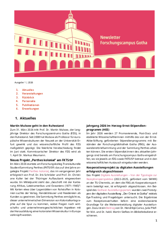 Der gemeinsame Newsletter 1/2026 der Gothaer Forschungseinrichtungen ist erschienen.