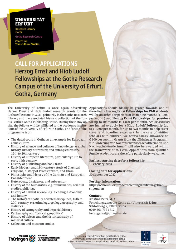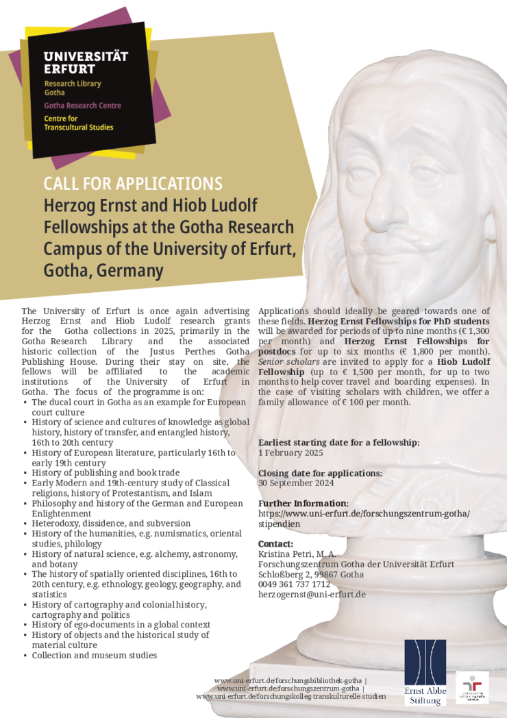 The following scholarships are awarded for scholarly work on the Gotha collections: