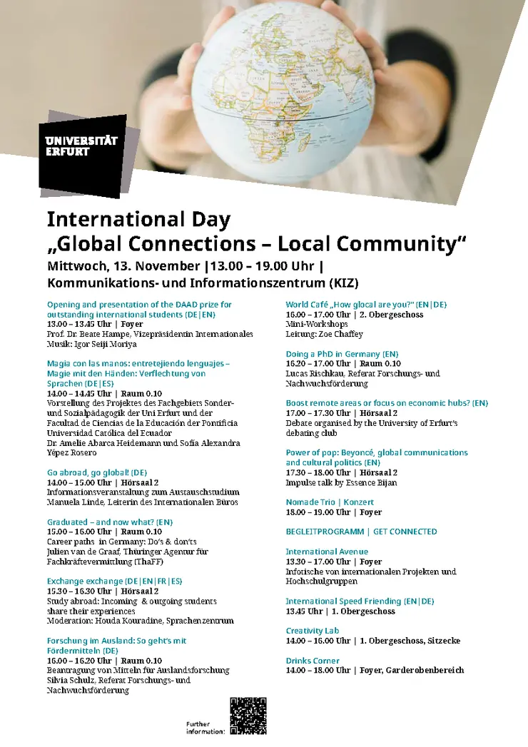 The 2nd International Day took place on November 13, 2024, from 1 to 7 p.m. in the Communication and Information Centre (KIZ). Thank you for coming or contributing to it!
