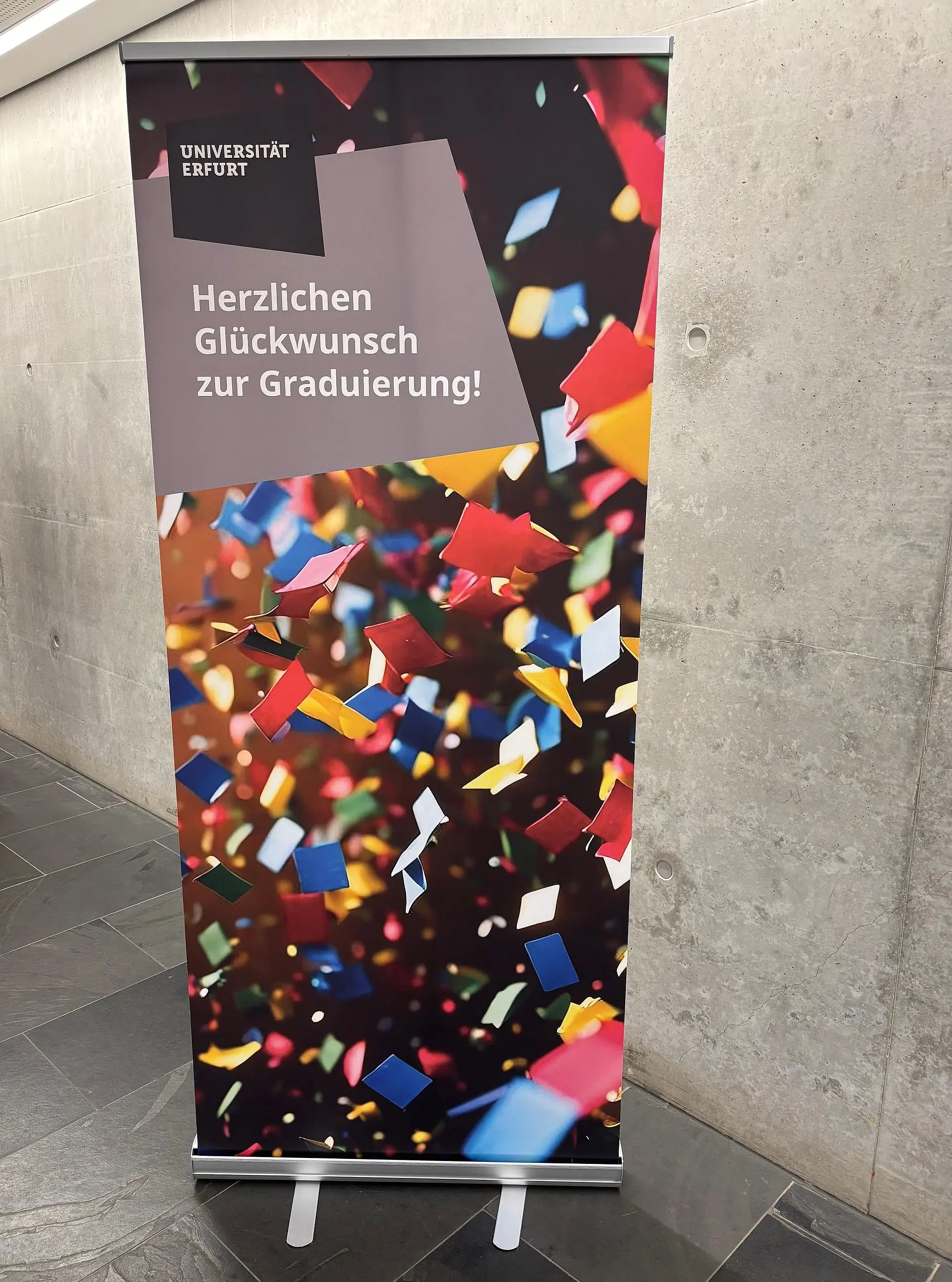 - The University Communications Department offers A4 folders (e.g. for presenting certificates or similar items) especially for graduation ceremonies. It also has postcards and buttons available as souvenirs of your time at university. Please feel free to get in touch!