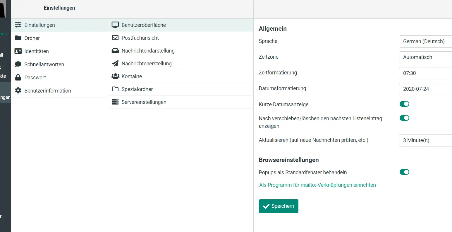Log in to Webmail for setup and go to Settings and select User Interface. Via the link Set as programme for 'mailto: links', you can set the link for the browser currently in use. In the browser settings, you can specify whether webmail is always opened or prompted each time.