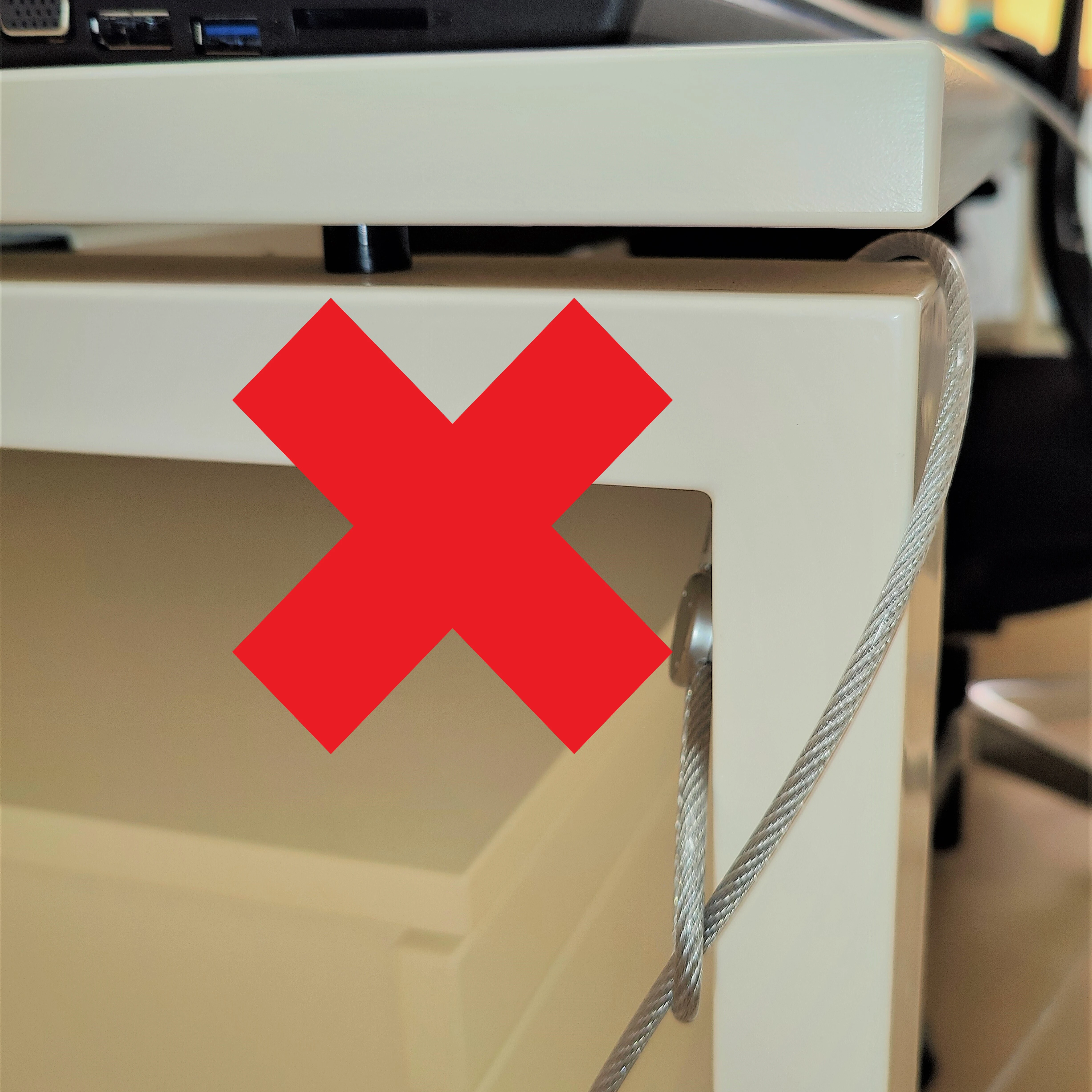 In order to prevent theft, it is necessary to ensure that the offices are locked at all times, even when you leave them for a short period of time. Mobile IT devices and cameras should also be kept in locked cabinets when leaving the office for a longer period of time. Under no circumstances should such devices be stored in a way that is visible from the outside. If there is no possibility to keep the devices locked, they should be secured with a Kensington lock. These can be obtained from the URMZ.