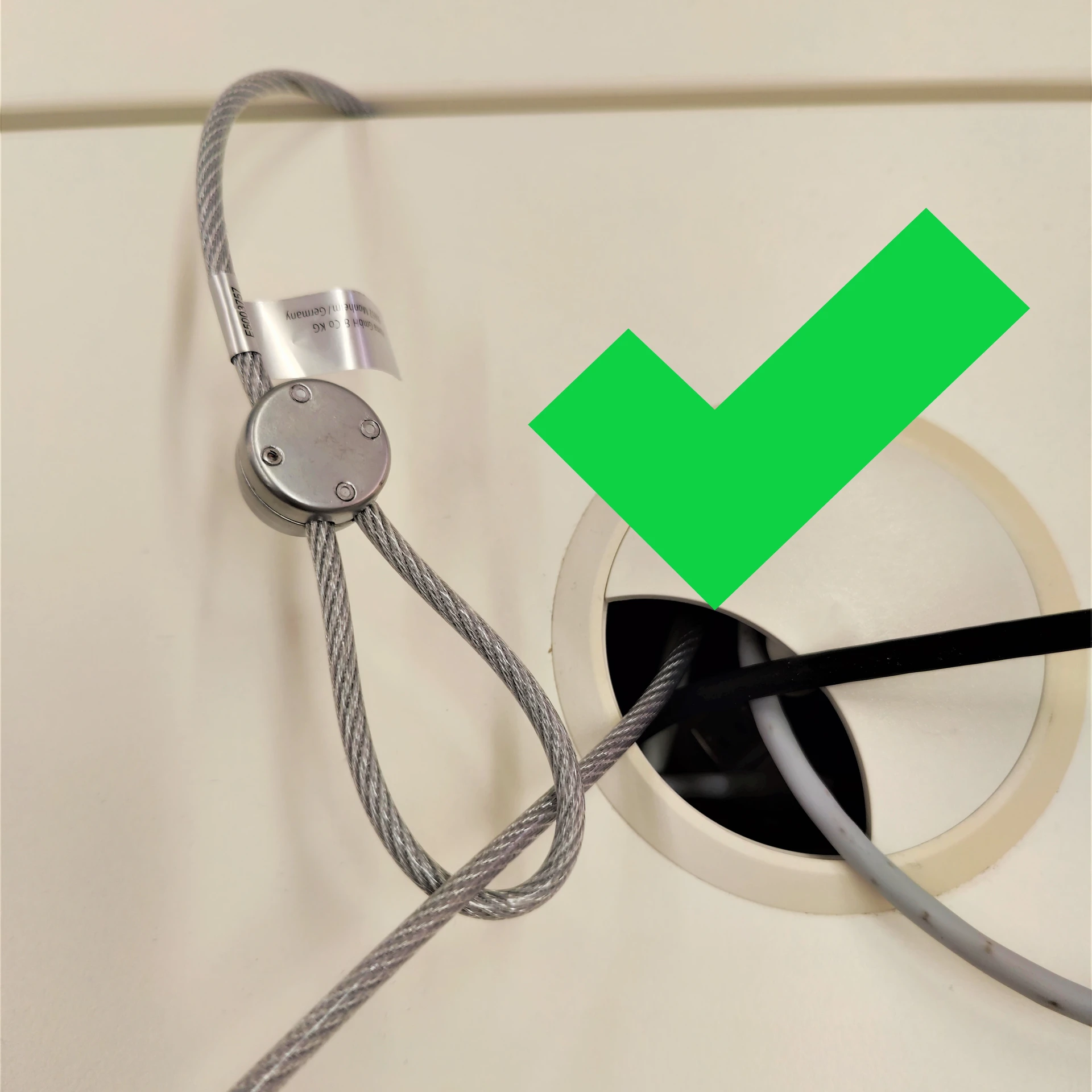 To prevent theft of notebooks, they should be secured with a Kensington lock. These can be connected to the designated port on the notebook. The initial PIN for the combination lock is 0000 for almost all models and must be changed immediately. On return, the PIN must be changed back to 0000.