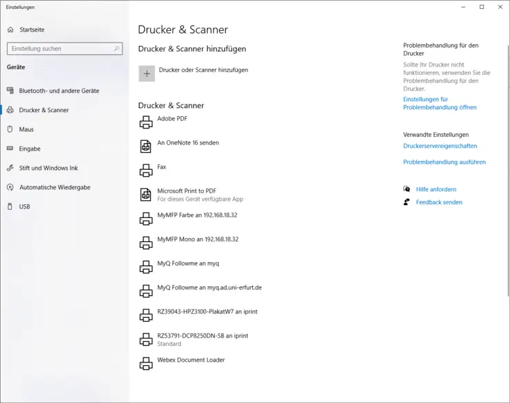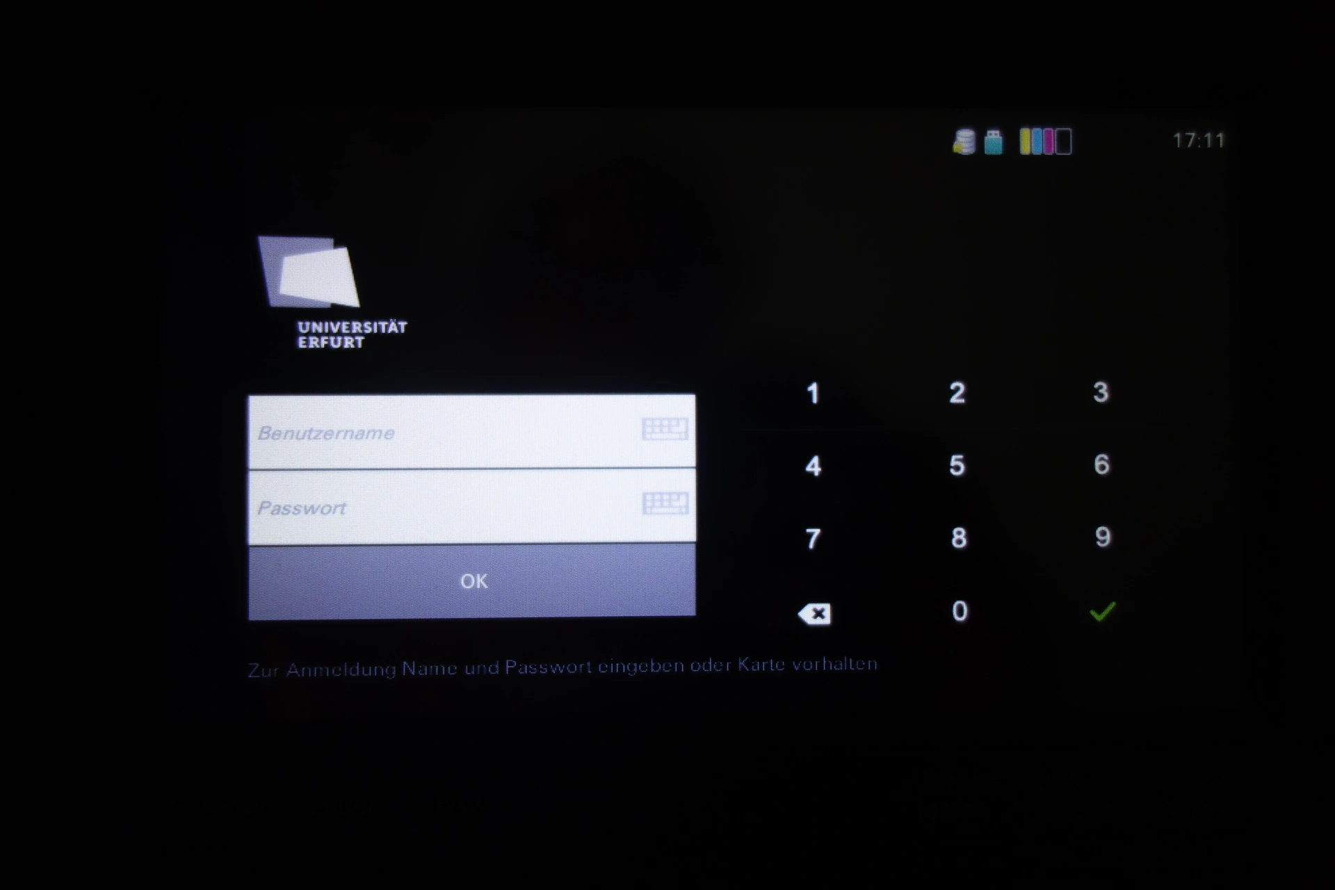 There are office MFGs in all UE office buildings that can be controlled from all PC workstations. The printer "MyQ Followme" is installed in the print menus of the PCs, which is used for printing on the service MFGs.