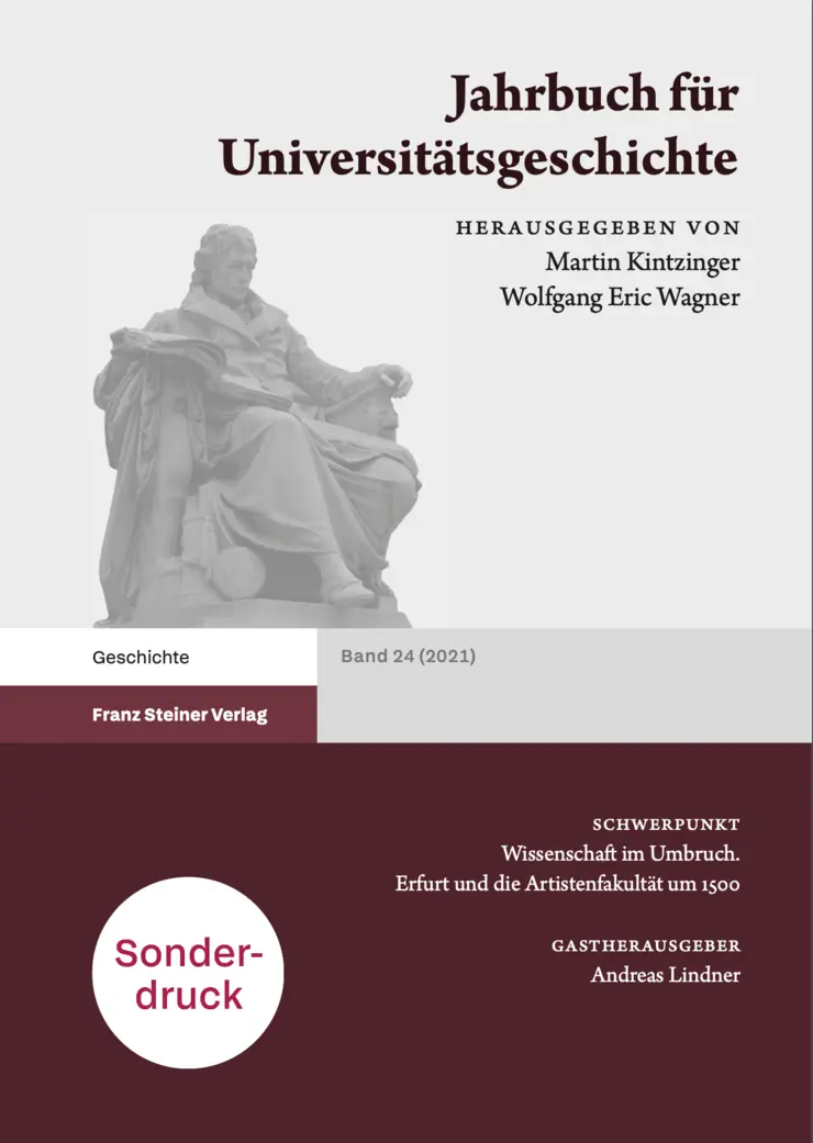 Seiler, Jörg, Vorlesestatuten der Philosophischen Fakultät der Universität Erfurt um (1563) 1565/66. Edition und historische Einordnung, in: Jahrbuch für Universitätsgeschichte 24 (2021) (erschienen 2025), 197–228.