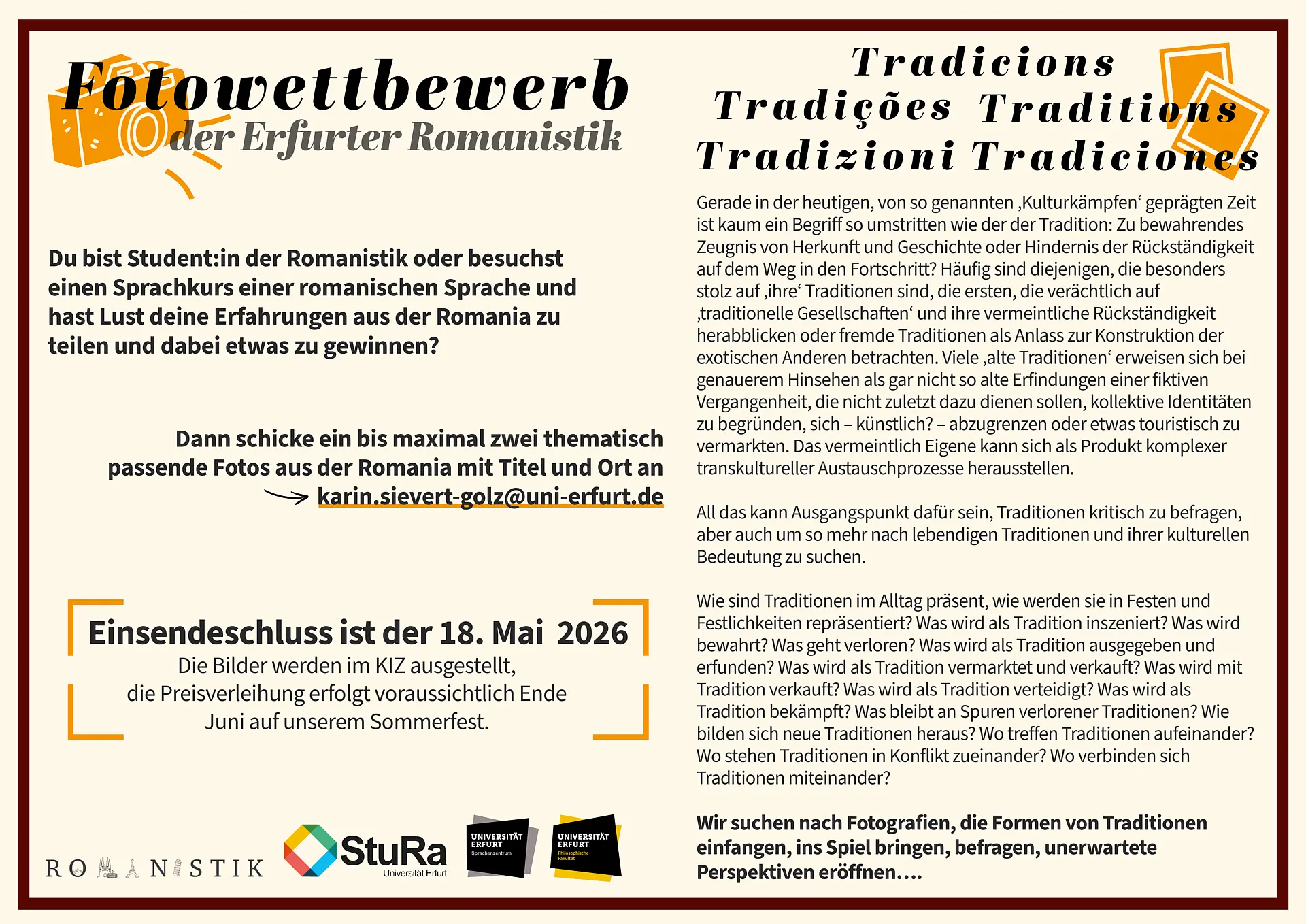 Please feel free to participate in the photo competition 2026 about “traditions”.
