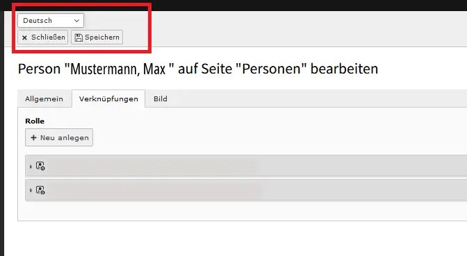If, on the other hand, the English details are not explicitly adapted, there is always a so-called fallback variant here, in which, for example, the organisational unit as well as fixed terms - telephone, address, office hours - are translated, the other data, such as the designation of the role, are displayed from the German version.