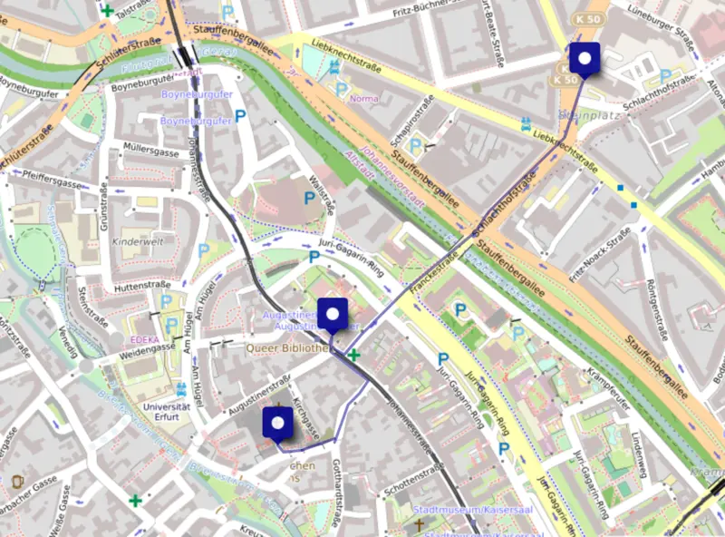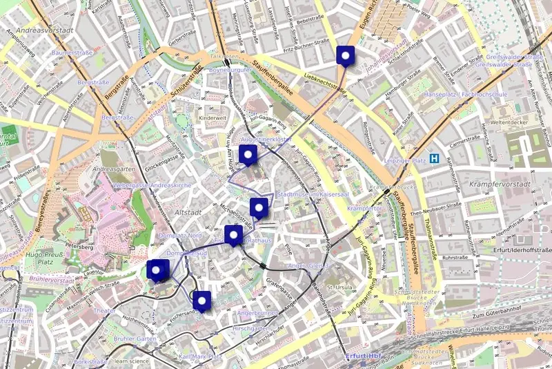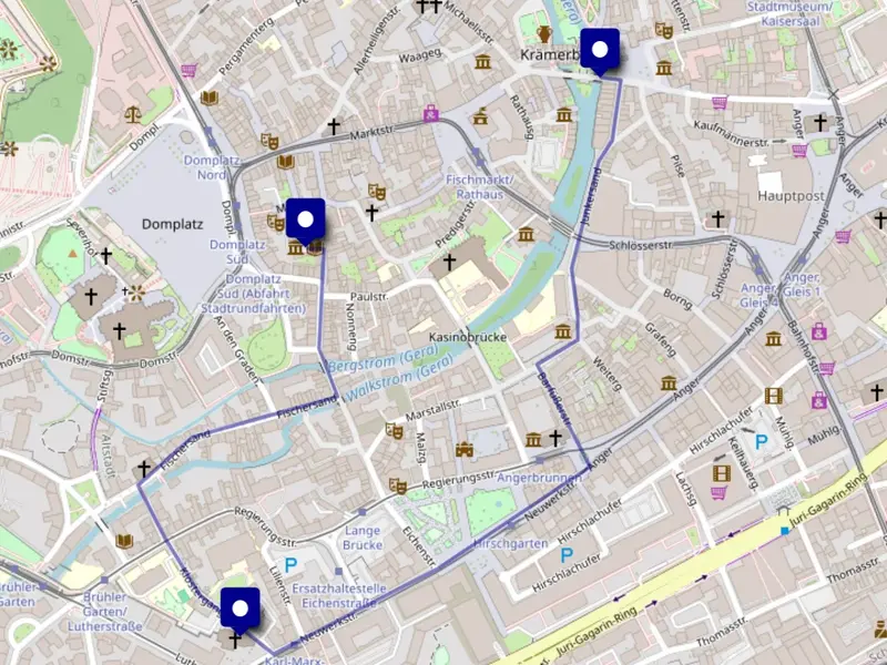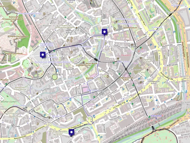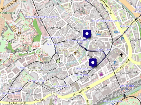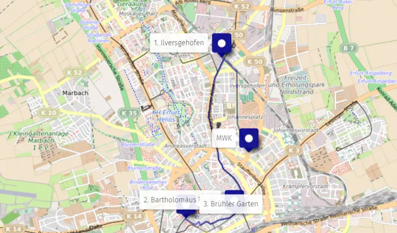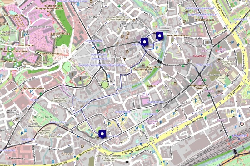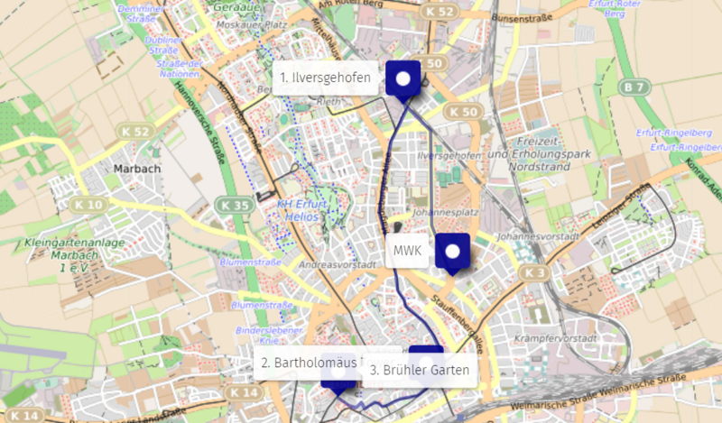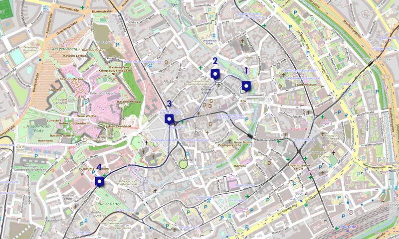 With the City Walks, we – the core members of the Religion and Urbanity research group – seek to discover those spaces in Erfurt which show us and our fellows how religion and urbanity have coalesced in Erfurt ever since it became a city. Each walk highlights one aspect of our research interests – be it how religious actors and spaces have influenced Erfurt’s topographical, architectural and social set up, how the co-use of city space was negotiated, how religious spaces today are configured, or how the Erfurt’s identity as the “city of flowers” plays itself out in present-day urban development projects. In 2020, our city walks were part of the DFG’s event series “Für das Wissen entscheiden”.