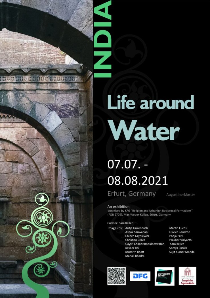 The exhibition was in German and English, and there was an audio guide. It took place in the context of the conference "Accessing Water in the South Asian City", organised by the KFG "Religion and Urbanity: Reciprocal Formations" (Max-Weber-Kolleg, University of Erfurt). The research group is based at the Max-Weber-Kolleg of the University of Erfurt and has been funded by the DFG (German Research Foundation) since 2018. The researchers are investigating how urbanity and religion have influenced each other throughout history, especially in Europe and South Asia.