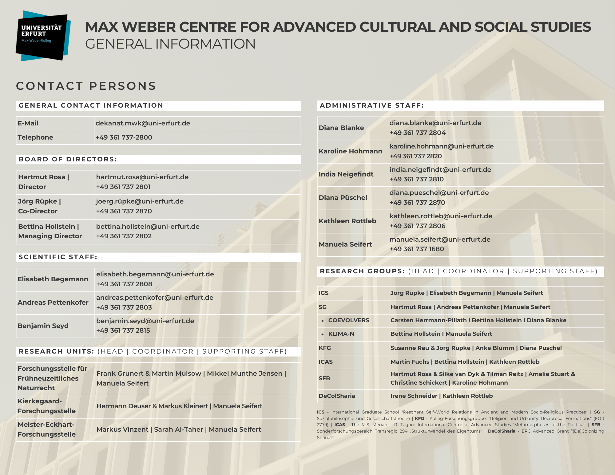 Research and Learning Schemes at the Max-Weber-Kolleg Erfurt