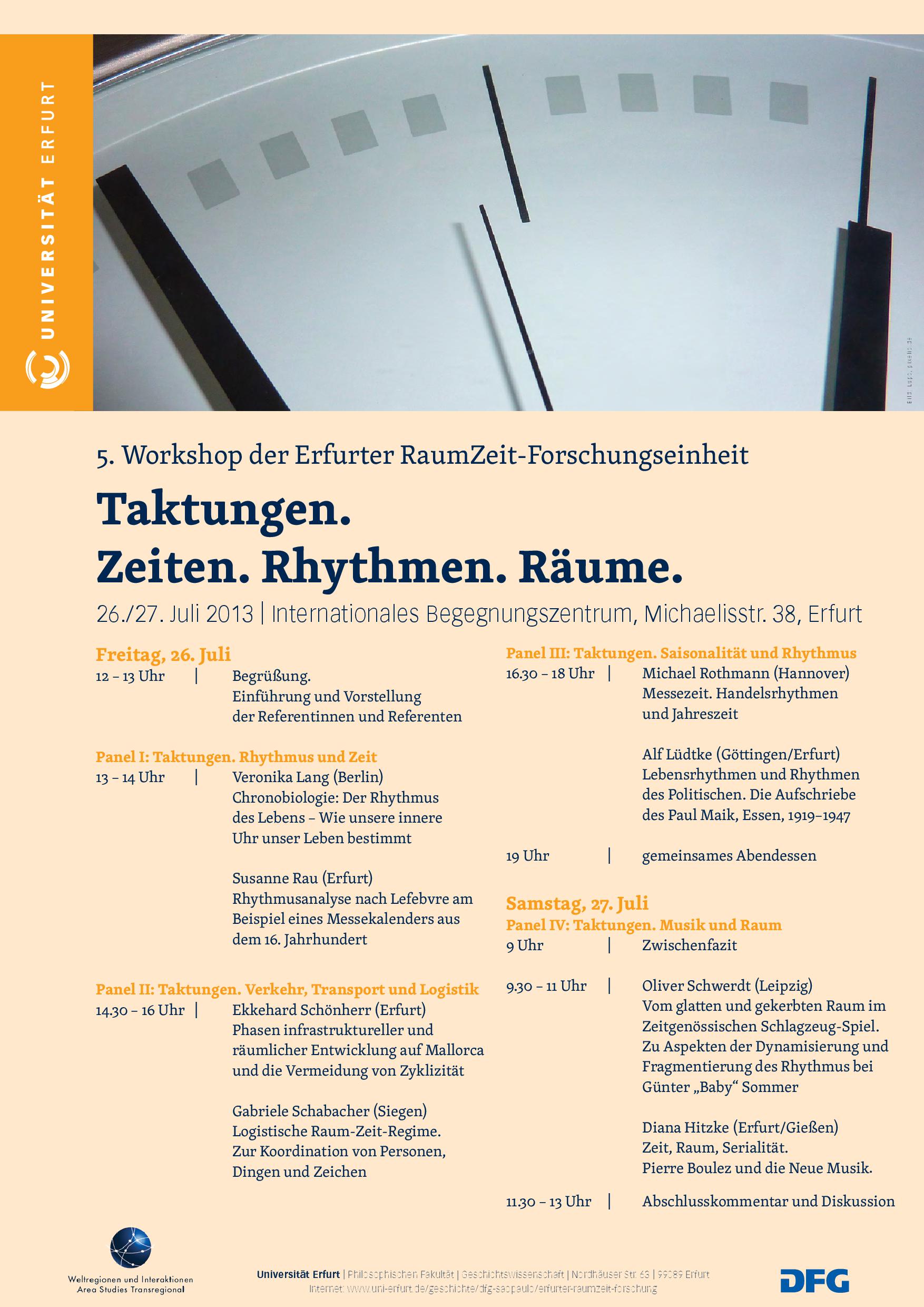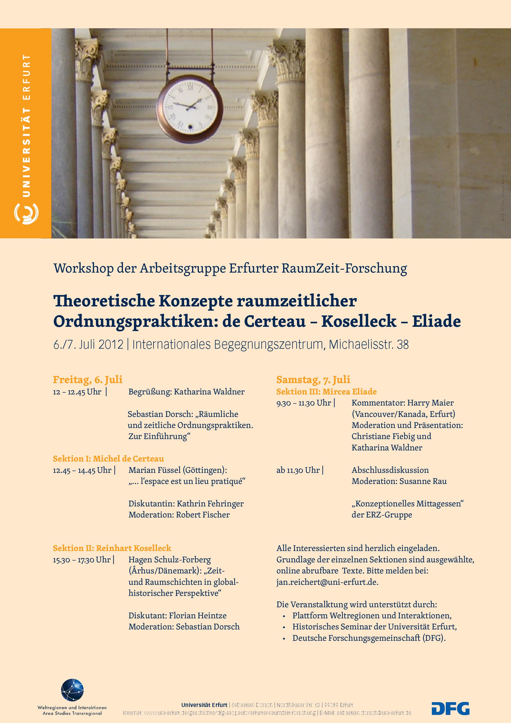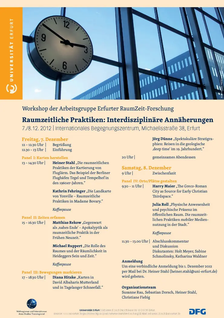 Convener: SpatioTemporality Research Erfurt with support of the platform "Weltregionen und Interaktionen", the Historische Seminar of the University of Erfurt and the Deutsche Forschungsgemeinschaft (DFG)
