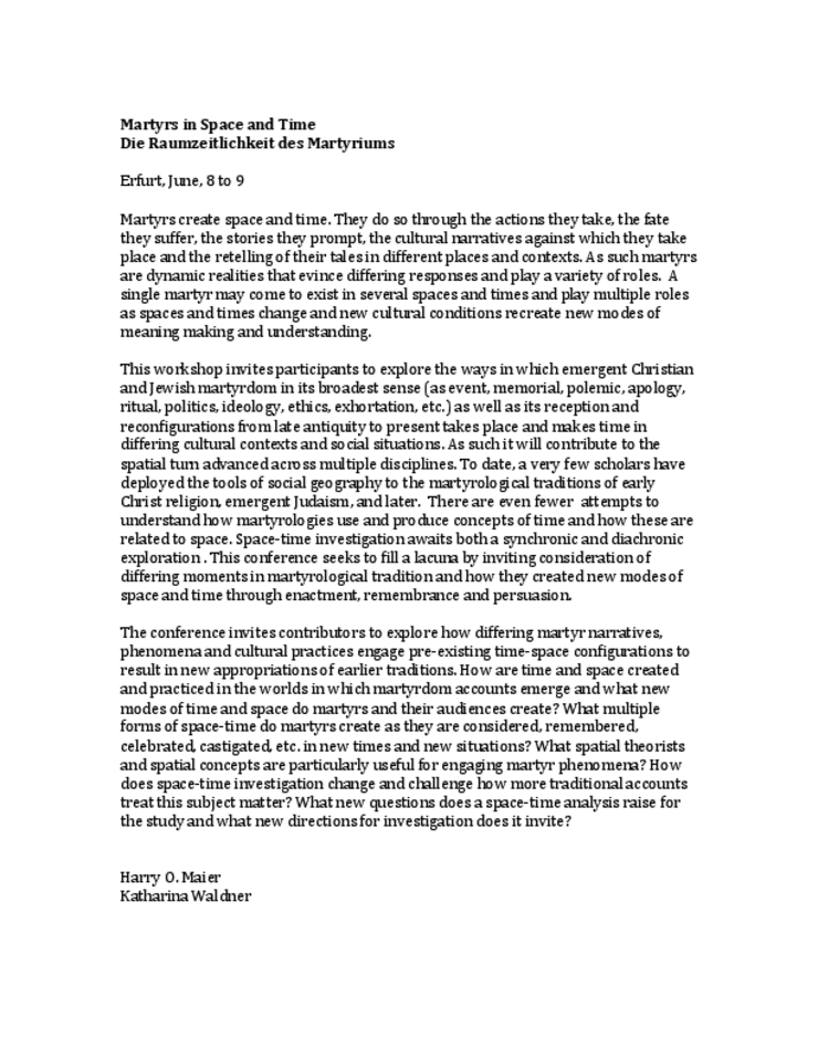 Convener: :Prof. Dr. Katharina Waldner (Erfurt) and Prof. Dr. Harry Maier (Erfurt), Erfurt