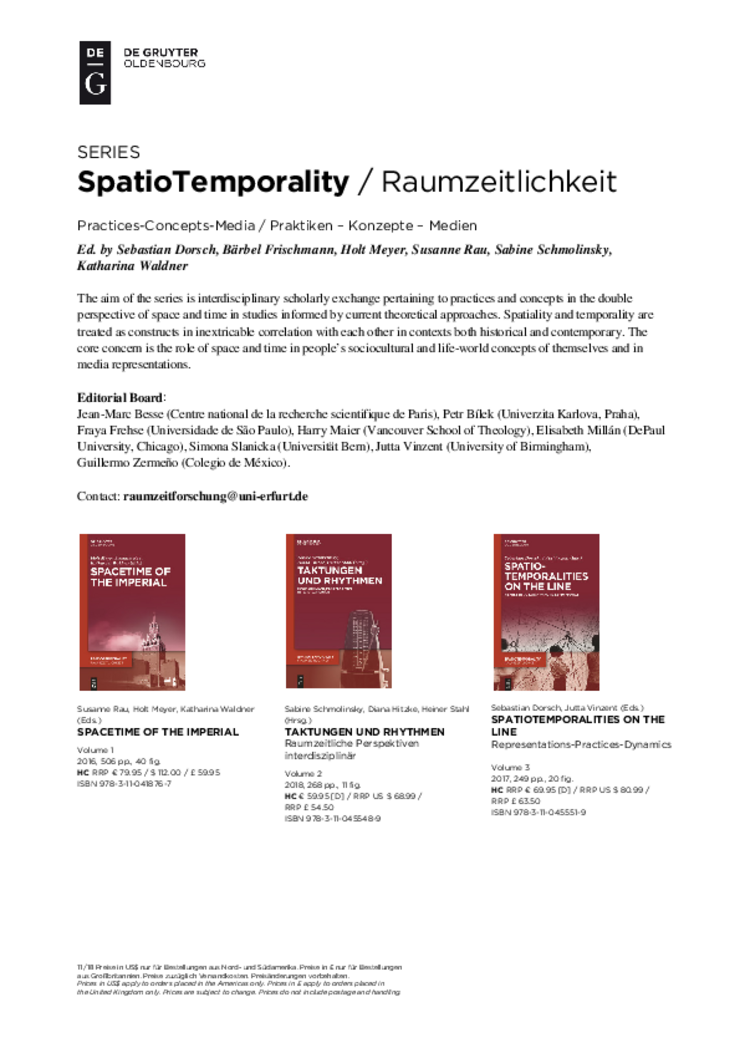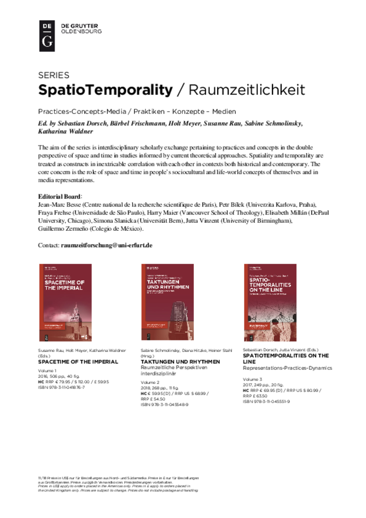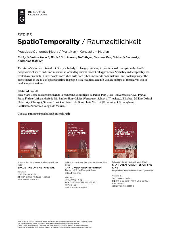In 2016, members of the ERZ initiated the series „Spatio-Temporality. Practises-Concept-Media.“ You find further information on the series on the website of de Gruyter.