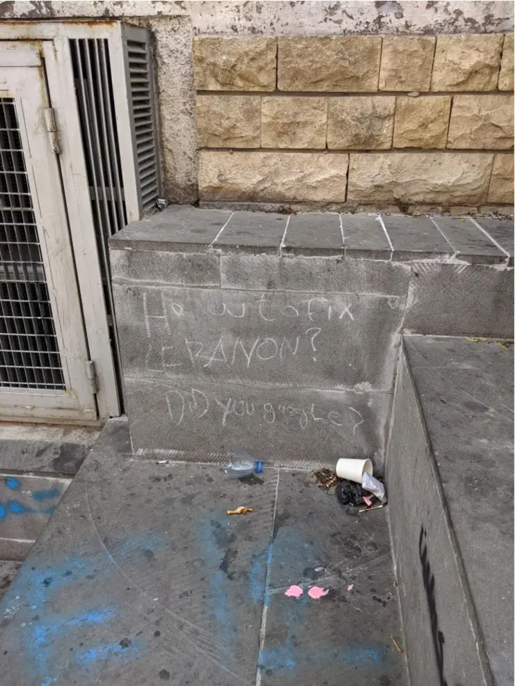 Im Kontrast zu den Nächten. Die Straße entlang und alle paar Meter musst du dich zu einem anderen Beat bewegen. Das Klackern der losen Kopfsteinpflaster, wenn ein Auto langsam die die Straße entlang rollt. Langsam der Menschenmassen wegen, die ausgelassen, betrunken nicht mehr Straße und Bürgersteig unterscheiden. Ich höre immer, dass es so anders war. Und natürlich, die Krise im Land kann nicht unbemerkt bleiben. Noch immer erinnern leerstehende Restaurants an die Explosion. Das Geld fehlt, um sie wieder aufzubauen. Die Trümmer sind nicht angerührt. So wie die Tankstelle. Unter ihr vergraben, noch immer Autos. Wenn das Geld den Besitzer*innen fehlt, kommt es nicht von anderswo. Außer von Menschen, denen es selbst fehlt. Ich kann mir nicht vorstellen, dass die Explosion erst ein Jahr her ist. Ohne eine Regierung, so viel wieder aufgebaut.