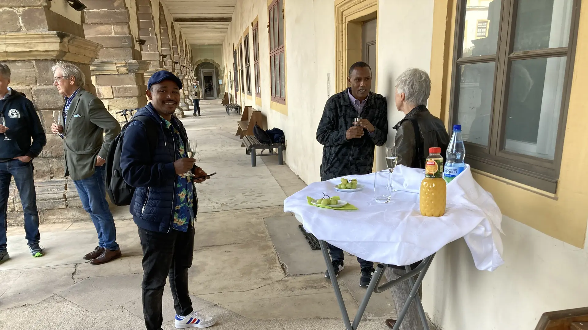 In May 2023, the second annual conference of the German-Ethiopian Scholarship Initiative took place at the Centre for Transcultural Studies in Gotha. Eleven of the Ethiopian Henkel Fellows currently conducting research in Europe came together to discuss their ongoing research. A visit to the Gotha Research Library met with a great response, with the Ethiopian manuscripts from the Orientalia collection presented by Dr Feras Krimsti attracting particular attention. However, the current situation in Tigray and the possibilities of ending the war and violence on the ground were also on the agenda – a topic that moved everyone. Organised as part of the History Department's "Frieden schaffen?" (Making Peace?) lecture series, the former Ambassador of the Federal Republic of Germany to Ethiopia, Brita Wagener, the Erfurt-based international law expert Michael Riegner, the architect and anthropologist Dr Alula Tesfay and the artist Michael Hailu discussed the different experiences of the war, the hopes and expectations for peace on the ground and the often difficult paths and detours of the peacekeeping process that has now begun in a public evening event in the well-attended Gotha Castle Church.