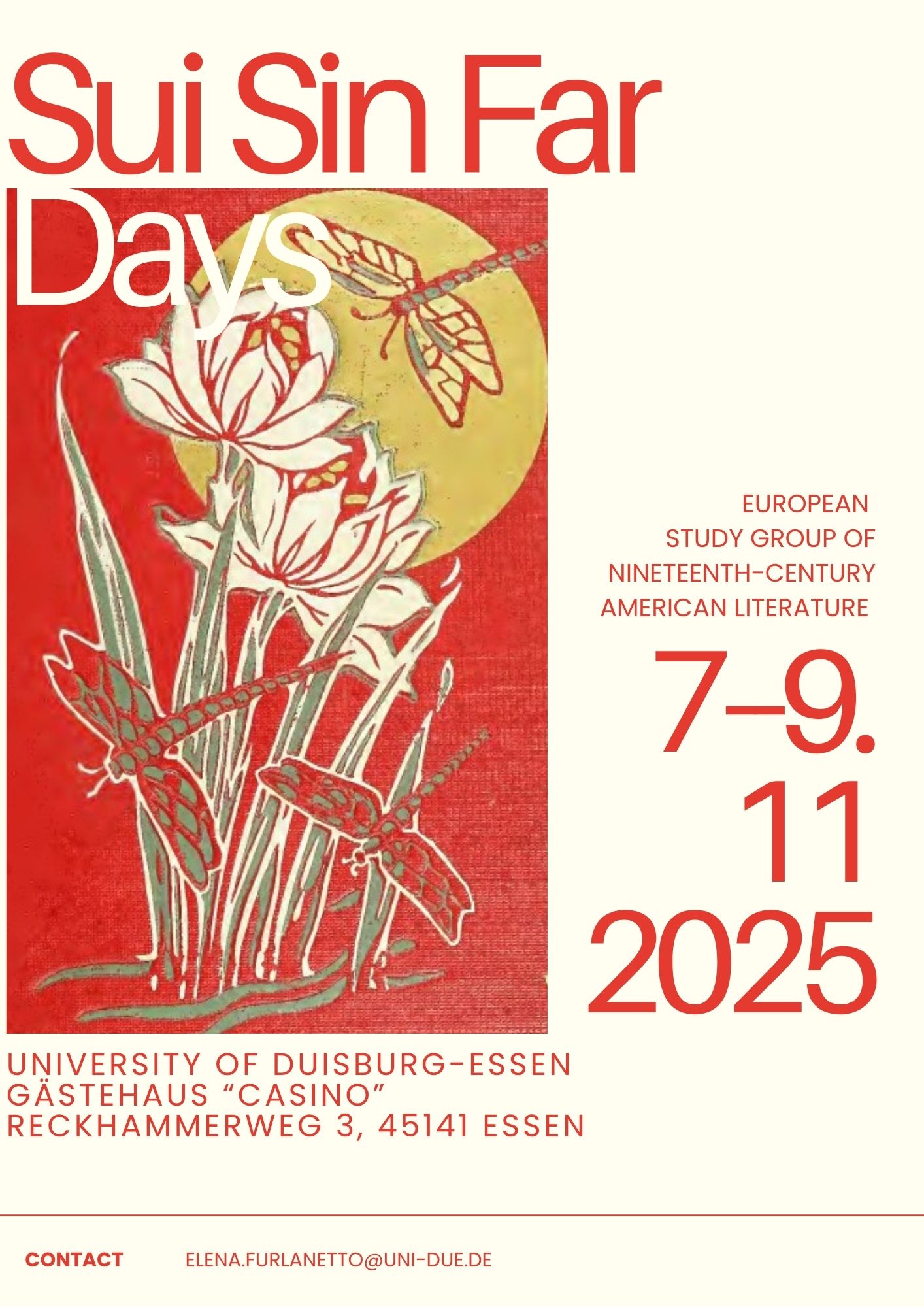We are pleased to announce that this year's meeting of the European Study Group of Nineteenth-Century American Literature will take place at the University of Duisburg-Essen. The focus of the workshop is on reanimating interest in Sui Sin Far/Edith Maude Eaton and re-reading her work in the light of the discipline’s contemporary concerns. This is also meant to tangentially inspire general reflections on the state of 19th-century American Studies in this disconcerting historical moment. In what ways can early and 19th-century American Studies contribute meaningfully to current discussions on the American continent in the years of the Trump presidency (and beyond)?