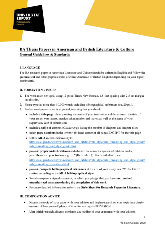 Leitfaden für literaturwissenschaftliche Hausarbeiten in Anglistik/AmerikanistikThis guide provides an overview of the requirements for term papers in British and American literature, including guidelines on structuring a paper, developing a thesis, formal requirements, and citation styles.