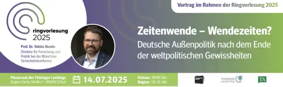 Im Wintersemester setzen die Universität Erfurt, der Thüringer Landtag und die Funke Mediengruppe ihre gemeinsame Ringvorlesung fort. Sie wird sich diesmal mit dem Thema "35 Jahre Deutsche Einheit" beschäftigen. Erster Termin ist am Freitag, 24.…