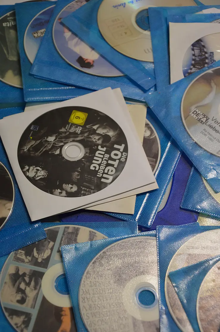 • über 2.000 DVDs mit Spiel- und Dokumentarfilmen, darunter weite Teile der DEFA-Produktion und des DDR-Fernsehens, zahlreiche Folgen von „Polizeiruf 110“ und „Tatort“ sowie Klassiker des Avantgarde- und Arthouse-Kinos