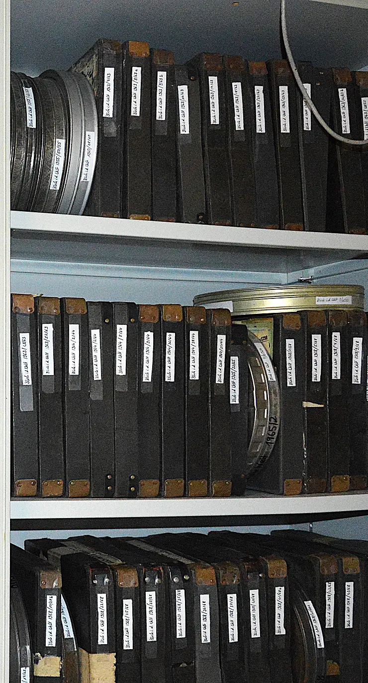 • insgesamt etwa 600 Filmrollen im 35mm-Format, schwarz-weiß und in Farbe, meist aus der Zeit zwischen 1960 und 1980, durchweg vorführtauglich, z. T. mit originalen Ankündigungsplakaten und Inhaltsangaben