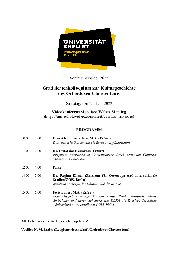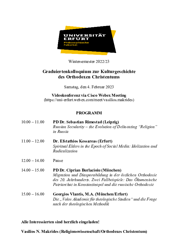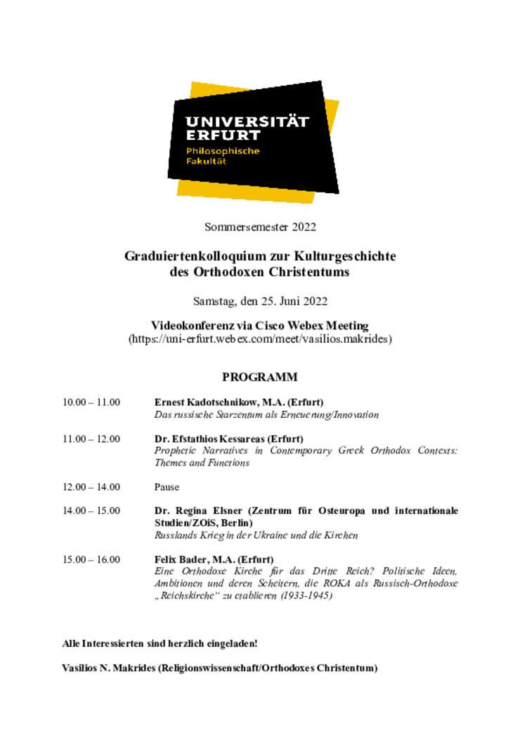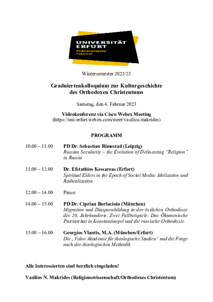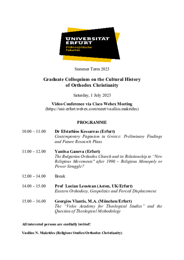 Graduate Colloquium on the Cultural History of Orthodox Christianity